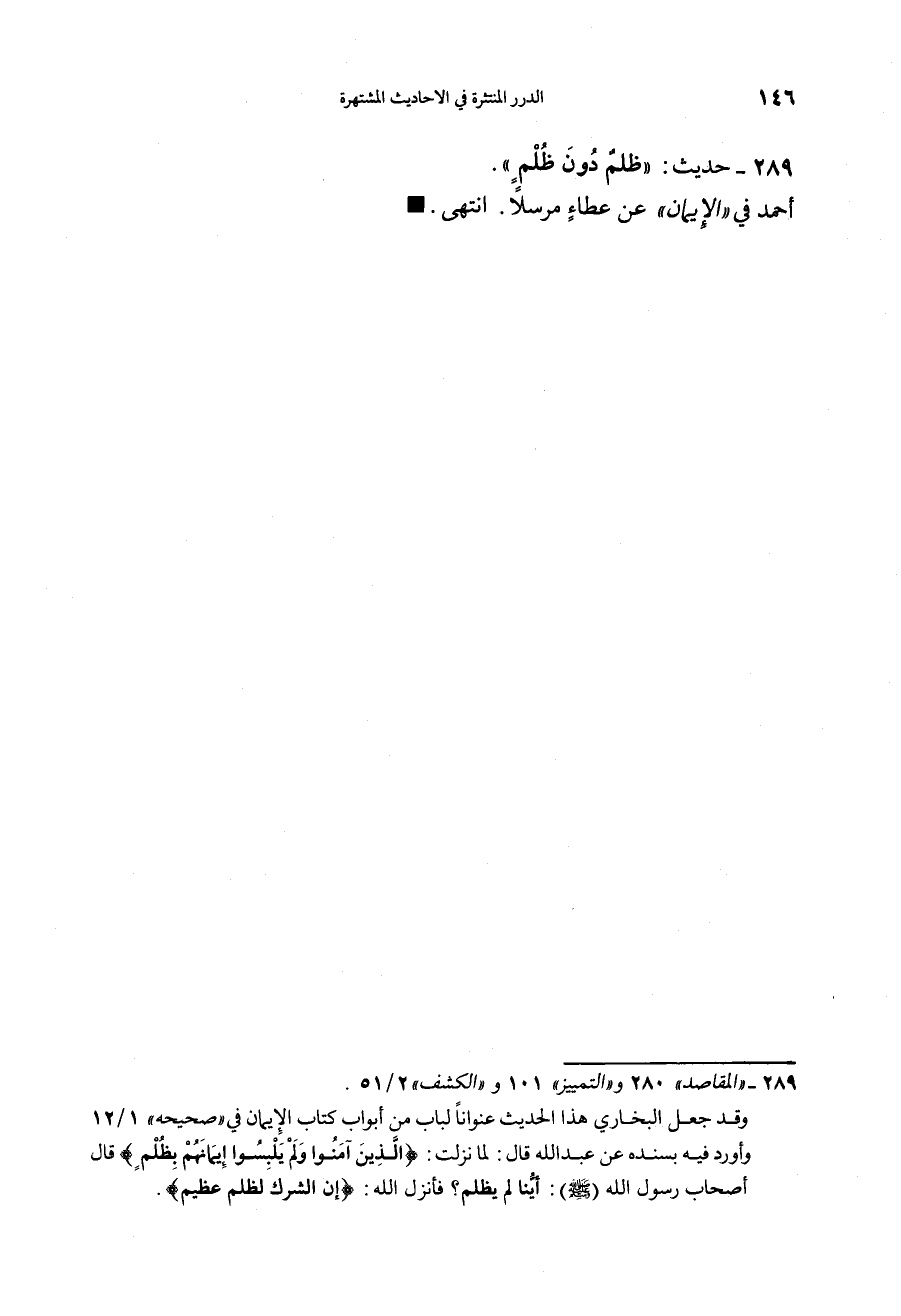 289 - (حديث) "ظُلْمٌ دُونَ ظُلْمٍ" أحمد في الإيمان عن عطاء مرسلاً.