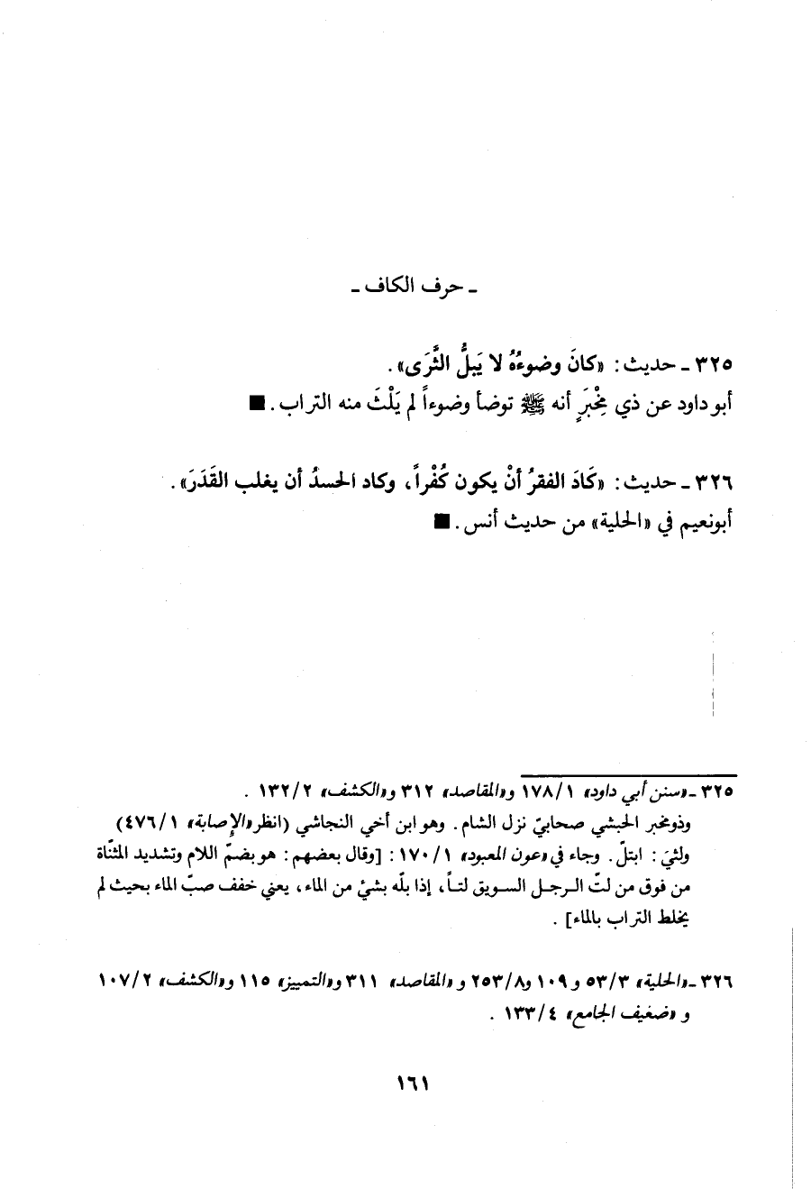 326 - (حديث) "كادَ الْفَقْرُ أَنْ يَكُونَ كُفْراً، وَكَادَ الْحَسَدُ أَنْ يَغْلِبَ الْقَدَرَ" أبو نعيم في الحلية من حديث أنس.