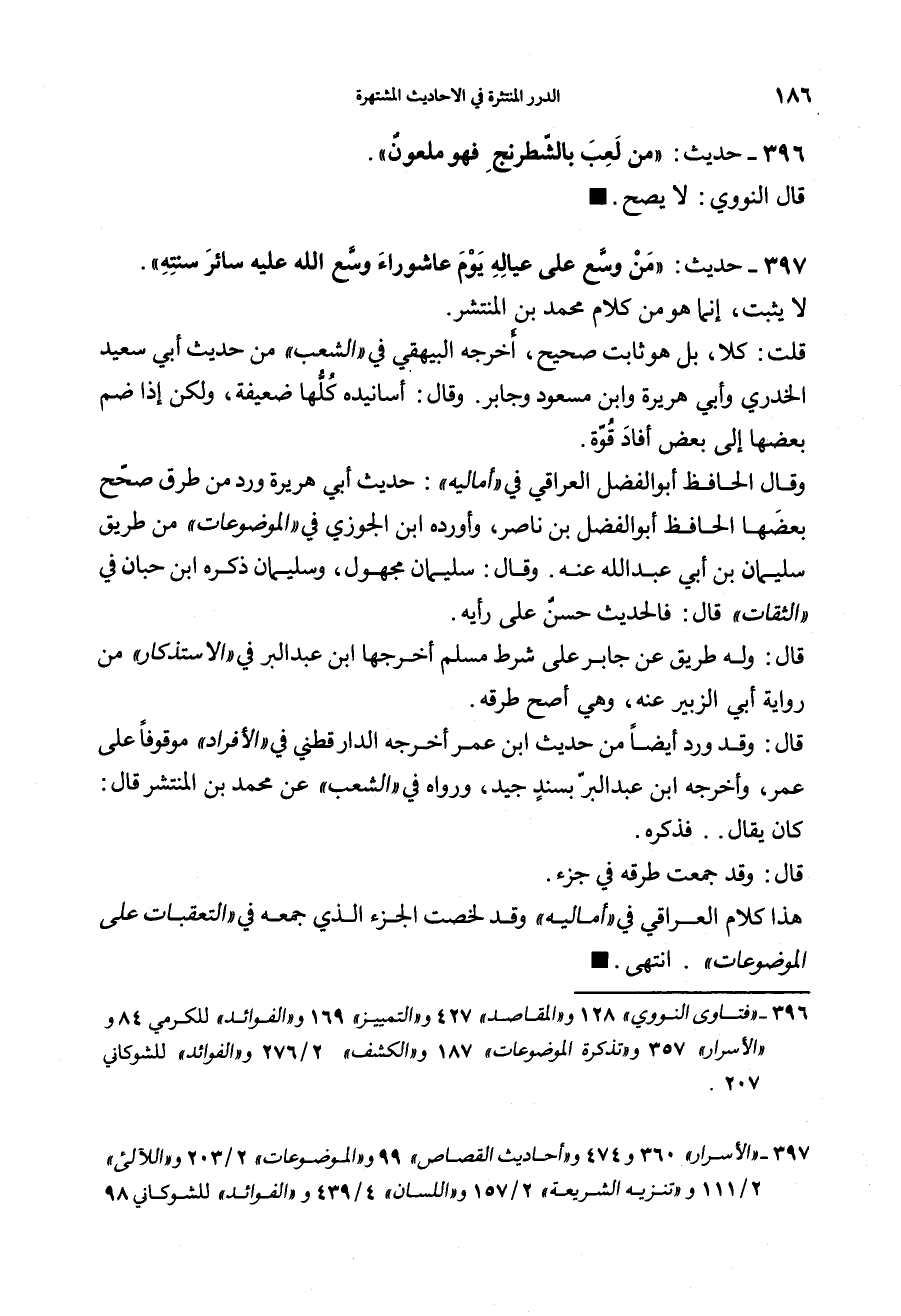 397 - (حديث) "مَنْ وَسَّعَ عَلَى عِيَالِهِ يَوْمَ عَاشُورَاءَ وَسَّعَ اللَّهُ عَلَيْهِ سَائِرَ سَنَتِهِ" لا يثبت، إنما هو من كلام محمد بن المنتشر.