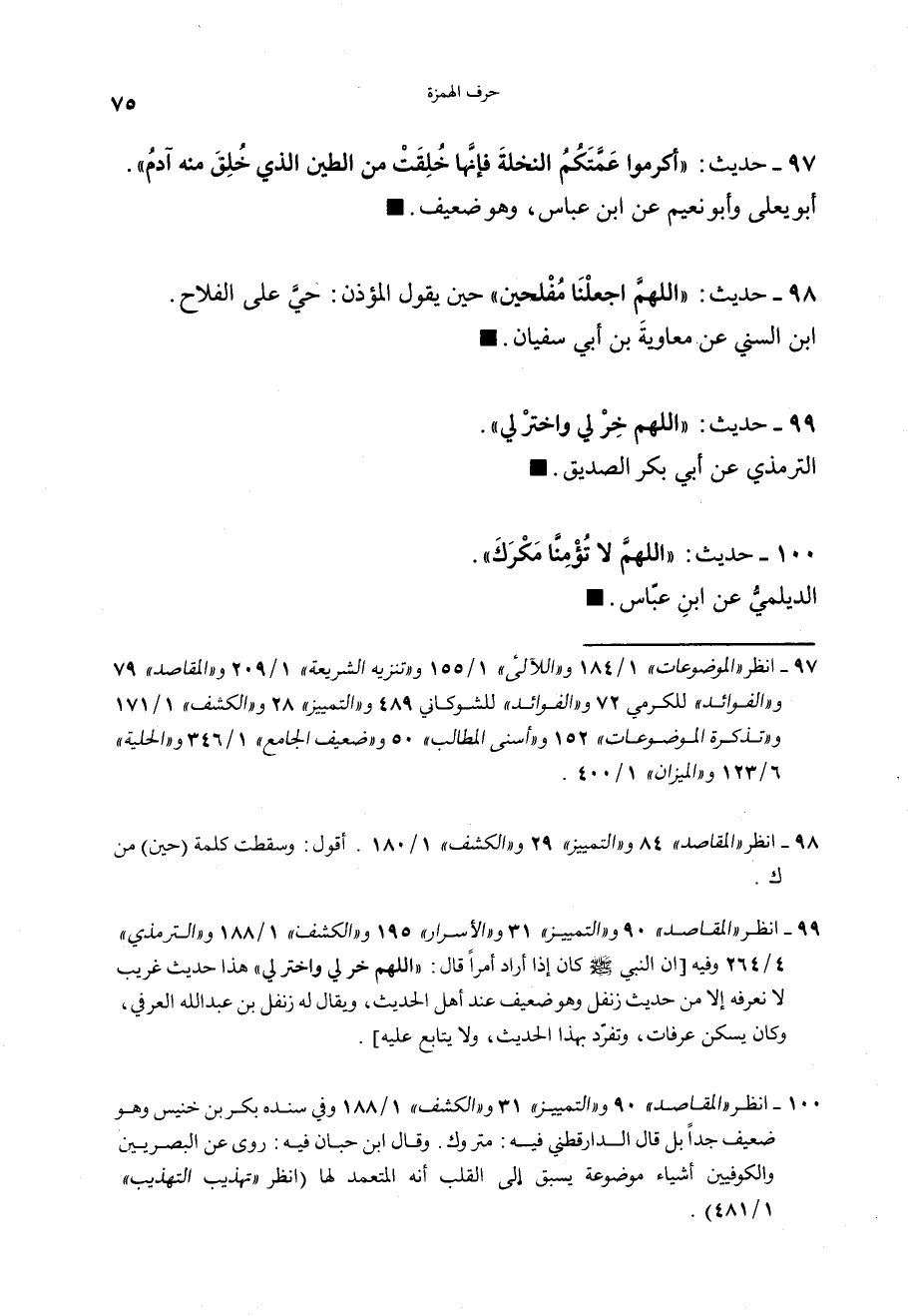 97 - (حديث) "أَكْرِمُوا عَمّتَكُمُ النَّخْلَةَ، فَإِنَّهَا خُلِقَتْ مِنَ الطَّينِ الَّذِي خُلِقَ مِنْهُ آدَمُ" أبو يعلى وأبو نعيم عن ابن عباس وهو ضعيف.