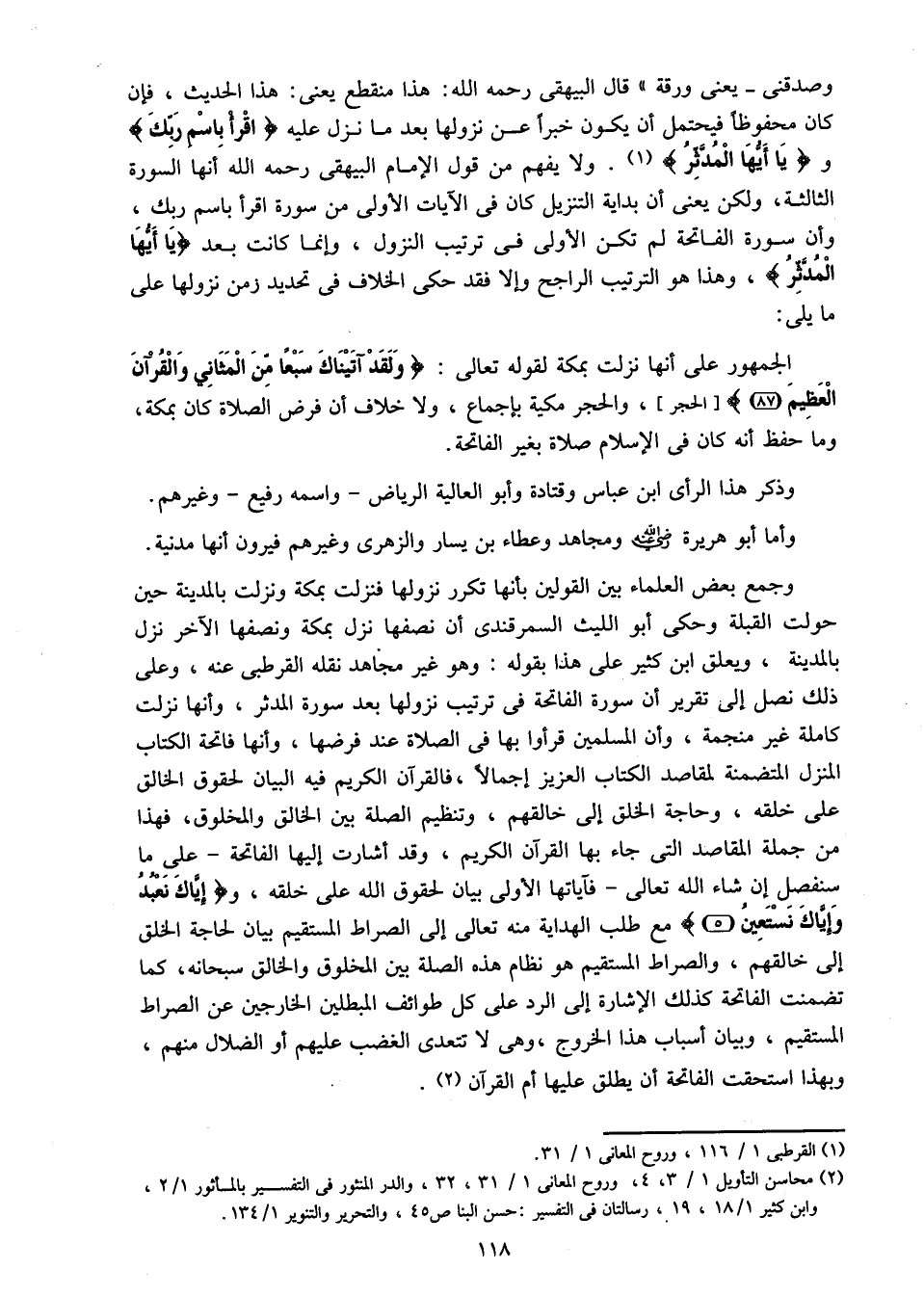 (2) محاسن التأويل 1/ 3، 4، وروح المعانى 1/ 31، 32، والدر المنثور فى التفسير بالمأثور 1/ 2، وابن كثير 1/ 18، 19، رسالتان فى التفسير: حسن البنا ص 45، والتحرير والتنوير 1/ 134.