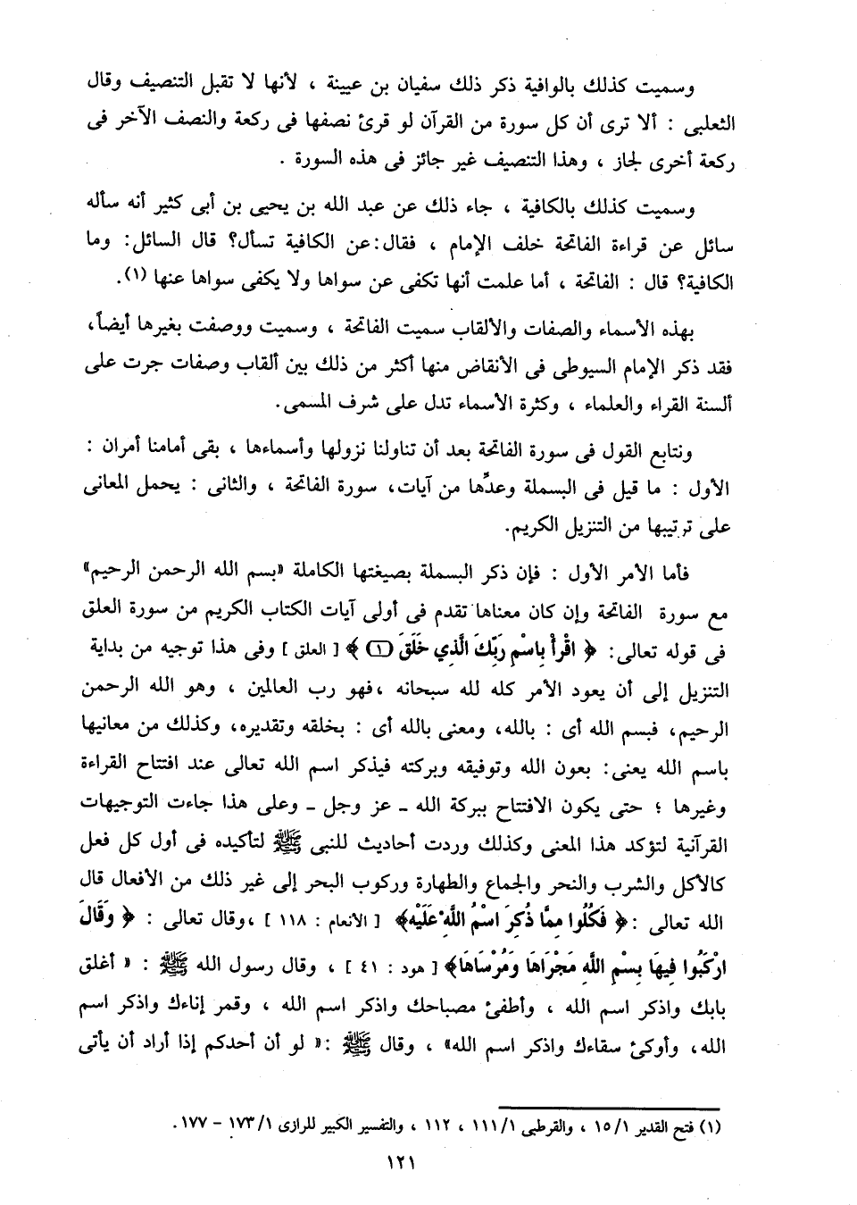 (1) فتح القدير 1/ 15، والقرطبى 1/ 111، 112، والتفسير الكبير للرازى 1/ 173 - 177.