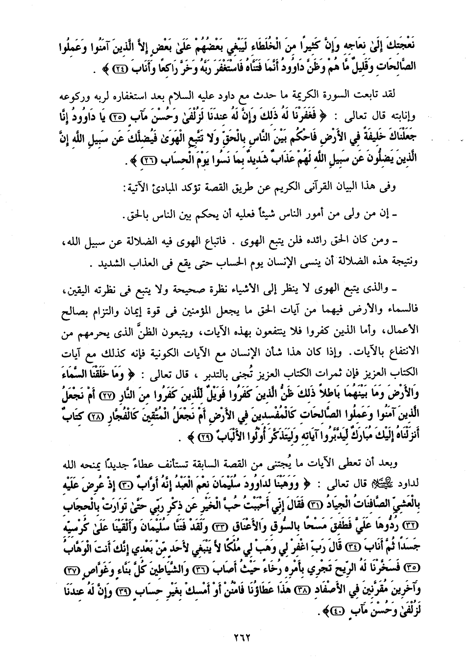 لقد تابعت السورة الكريمة ما حدث مع داود عليه السلام بعد استغفاره لربه وركوعه وإنابته قال تعالى: فَغَفَرْنا لَهُ ذلِكَ وَإِنَّ لَهُ عِنْدَنا لَزُلْفى وَحُسْنَ مَآبٍ (25) يا داوُدُ إِنَّا جَعَلْناكَ خَلِيفَةً فِي الْأَرْضِ فَاحْكُمْ بَيْنَ النَّاسِ بِالْحَقِّ وَلا تَتَّبِعِ الْهَوى فَيُضِلَّكَ عَنْ سَبِيلِ اللَّهِ إِنَّ الَّذِينَ يَضِلُّونَ عَنْ سَبِيلِ اللَّهِ لَهُمْ عَذابٌ شَدِيدٌ بِما نَسُوا يَوْمَ الْحِسابِ (26).