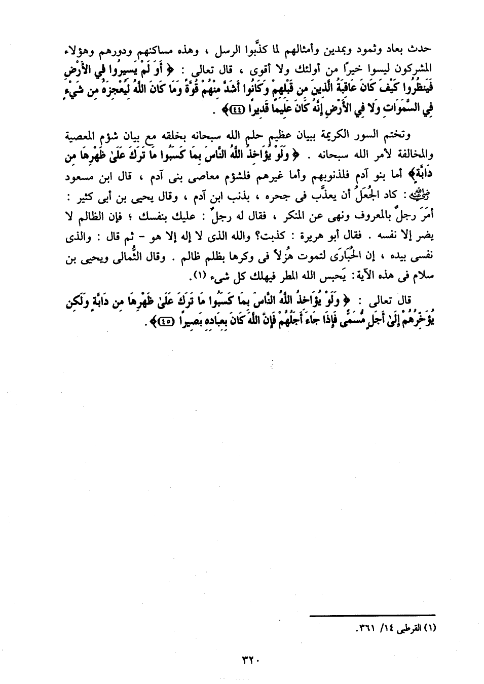 قال تعالى: وَلَوْ يُؤاخِذُ اللَّهُ النَّاسَ بِما كَسَبُوا ما تَرَكَ عَلى ظَهْرِها مِنْ دَابَّةٍ وَلكِنْ يُؤَخِّرُهُمْ إِلى أَجَلٍ مُسَمًّى فَإِذا جاءَ أَجَلُهُمْ فَإِنَّ اللَّهَ كانَ بِعِبادِهِ بَصِيراً (45).