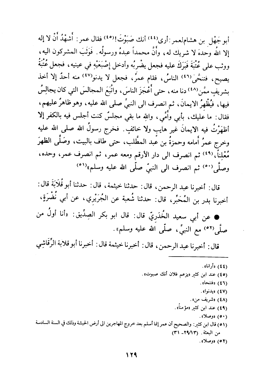 حَدَّثَنَا خَيْثَمَةُ قَالَ: حَدَّثَنَا أَبُو قِلَابَةَ , قَالَ: أَخْبَرَنَا بَدَلُ بْنُ الْمُحَبَّرِ , قَالَ: حَدَّثَنَا شُعْبَةُ , عَنِ الْجُرَيْرِيِّ , عَنْ أَبِي نَضْرَةَ , عَنْ أَبِي سَعِيدٍ الْخُدْرِيِّ , قَالَ: قَالَ أَبُو بَكْرٍ الصِّدِّيقُ: §أَنَا أَوَّلُ مَنْ صَلَّى مَعَ النَّبِيِّ صَلَّى اللهُ عَلَيْهِ وَسَلَّمَ