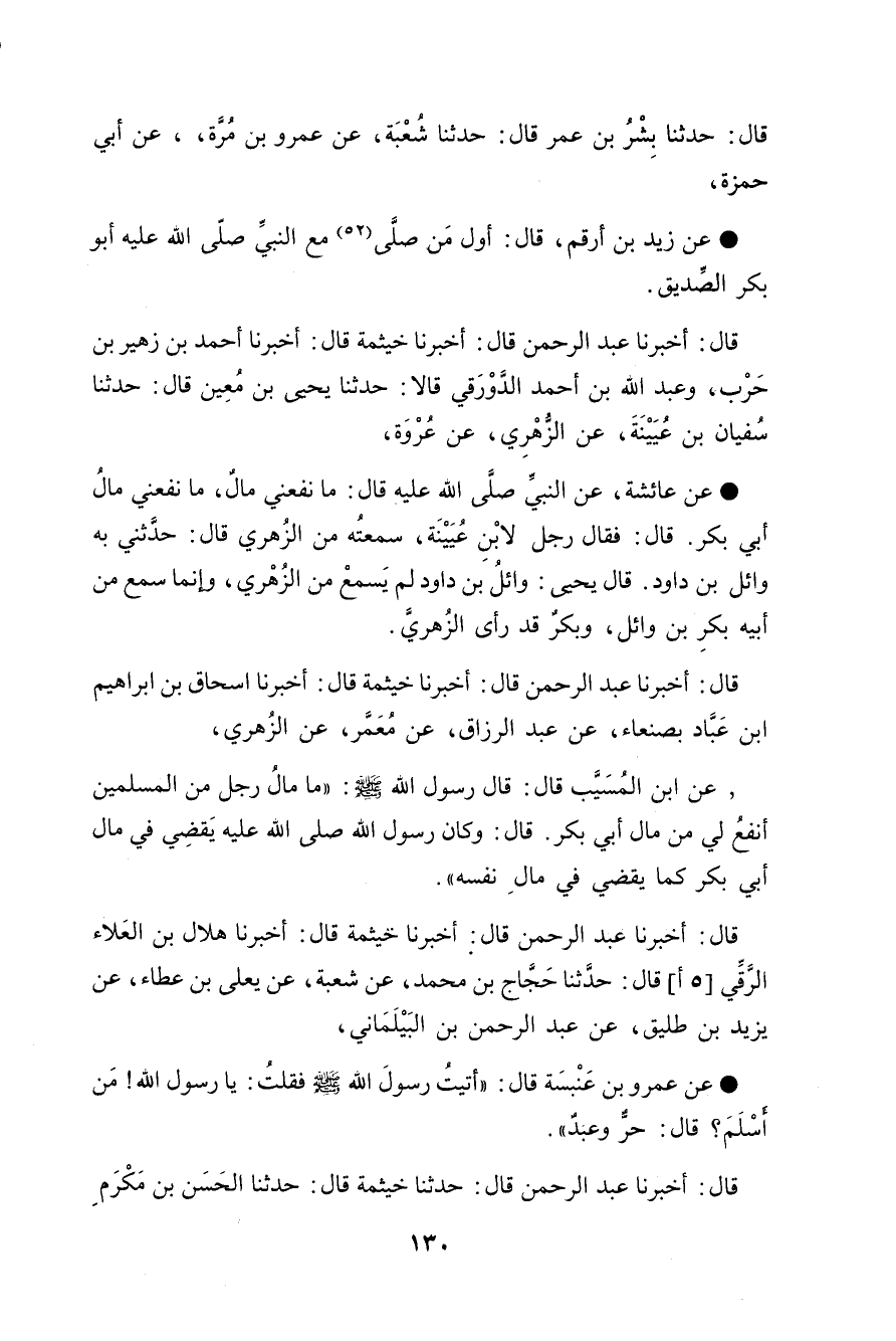 أَخْبَرَنَا أَحْمَدُ بْنُ زُهَيْرِ بْنِ حَرْبٍ , وَعَبْدُ اللَّهِ بْنُ أَحْمَدَ الدَّوْرَقِيُّ , قَالَا: حَدَّثَنَا يَحْيَى بْنُ مَعِينٍ , قَالَ: حَدَّثَنَا سُفْيَانُ بْنُ عُيَيْنَةَ , عَنِ الزُّهْرِيِّ , عَنْ عُرْوَةَ , عَنْ عَائِشَةَ , عَنِ النَّبِيِّ صَلَّى اللهُ عَلَيْهِ وَسَلَّمَ قَالَ: «§مَا نَفَعَنِي مَالٌ مَا نَفَعَنِي مَالُ أَبِي بَكْرٍ» قَالَ: فَقَالَ رَجُلٌ لِابْنِ عُيَيْنَةَ: سَمِعْتَهُ مِنَ الزُّهْرِيِّ؟ قَالَ: حَدَّثَنِي بِهِ وَائِلُ بْنُ دَاوُدَ قَالَ يَحْيَى: وَائِلُ بْنُ دَاوُدَ لَمْ يَسْمَعْ مِنَ الزُّهْرِيِّ , وَإِنَّمَا سَمِعَ مِنَ أَبِيهِ بَكْرِ بْنِ وَائِلٍ , وَبَكْرٌ قَدْ رَأَى الزُّهْرِيَّ