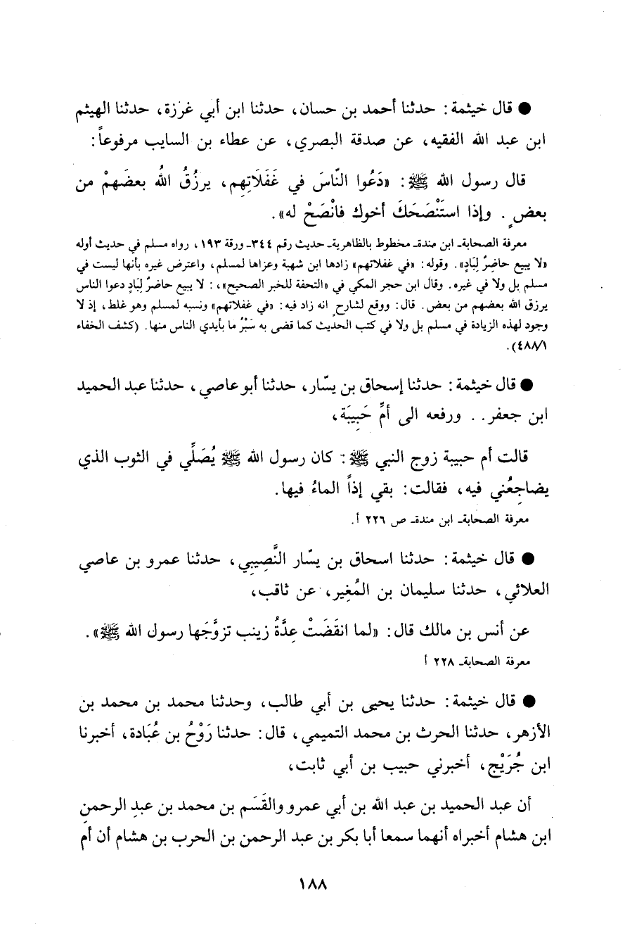 حَدَّثَنَا أَحْمَدُ بْنُ حَسَّانَ , حَدَّثَنَا ابْنُ أَبِي غُرْزَةَ , حَدَّثَنَا الْهَيْثَمُ بْنُ عَبْدِ اللَّهِ الْفَقِيهُ , عَنْ صَدَقَةَ الْبَصْرِيِّ , عَنْ عَطَاءِ بْنِ السَّائِبِ , مَرْفُوعًا: قَالَ رَسُولُ اللَّهِ صَلَّى اللهُ عَلَيْهِ وَسَلَّمَ: «§دَعُوا النَّاسَ فِي غَفَلَاتِهِمْ يَرْزُقُ اللَّهُ بَعْضَهُمْ مِنْ بَعْضٍ , وَإِذَا اسْتَنْصَحَكَ أَخُوكَ فَانْصَحْ لَهُ»