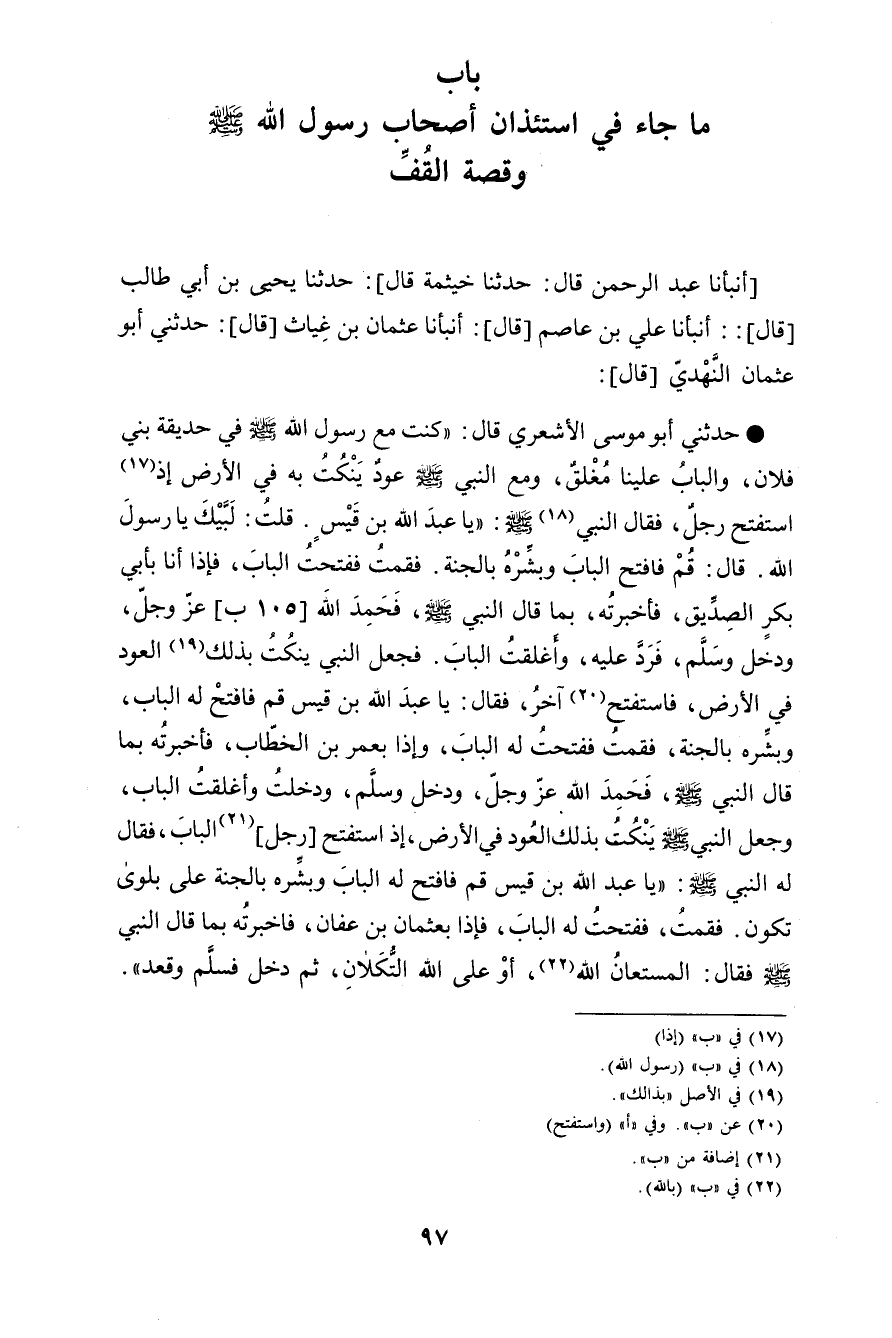 §بَابُ مَا جَاءَ فِي اسْتِئْذَانِ أَصْحَابِ رَسُولِ اللَّهِ صَلَّى اللهُ عَلَيْهِ وَسَلَّمَ وَقِصَّةِ الْقُفِّ
