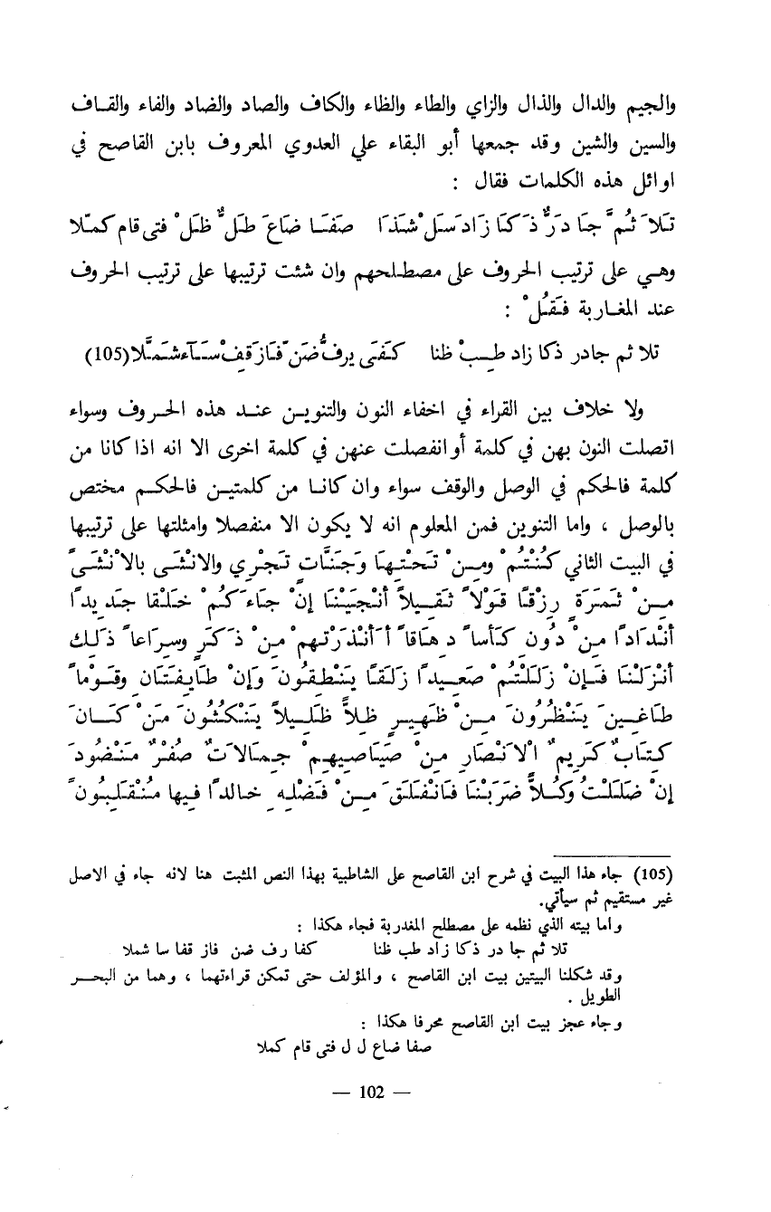 وهي على ترتيب الحروف على مصطلحهم وان شئت ترتيبها على ترتيب الحروف عند المغاربة فَقُلْ: