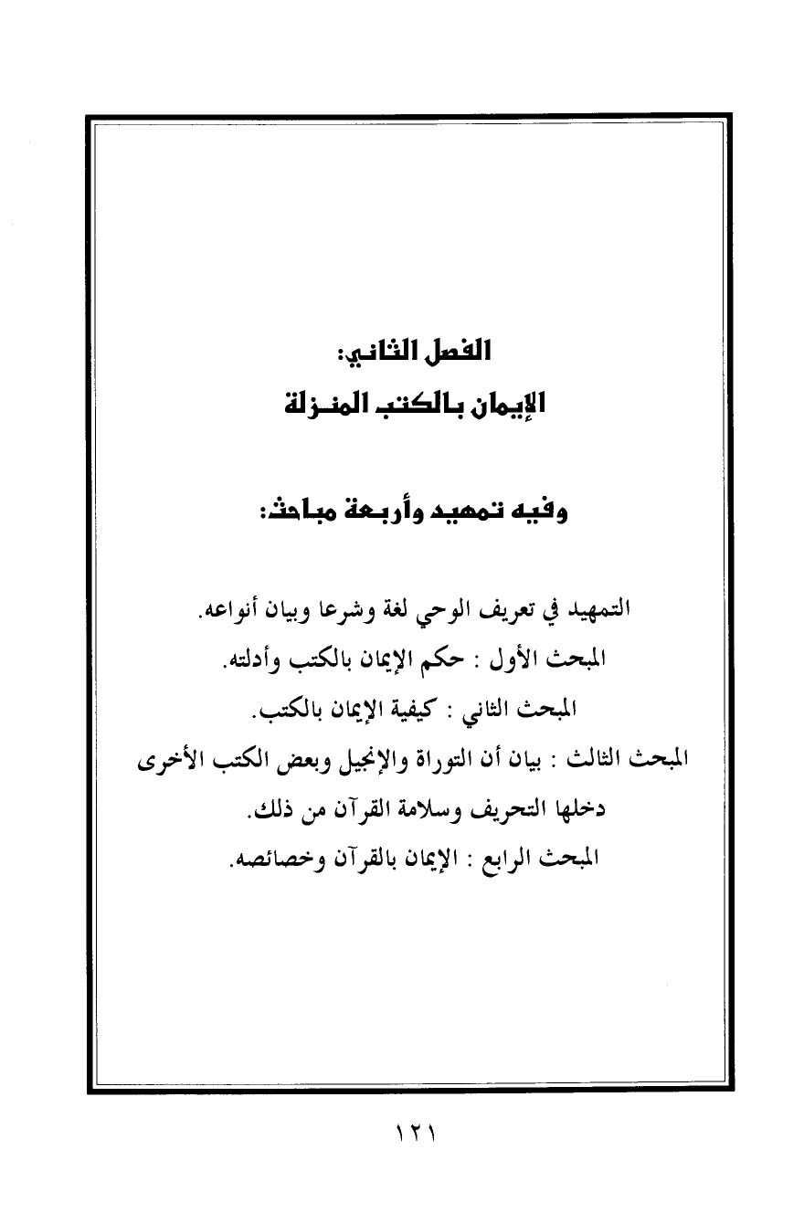 الفصل الثاني: الإيمان بالكتب المنزلة وفيه تمهيد وأربعة مباحث: