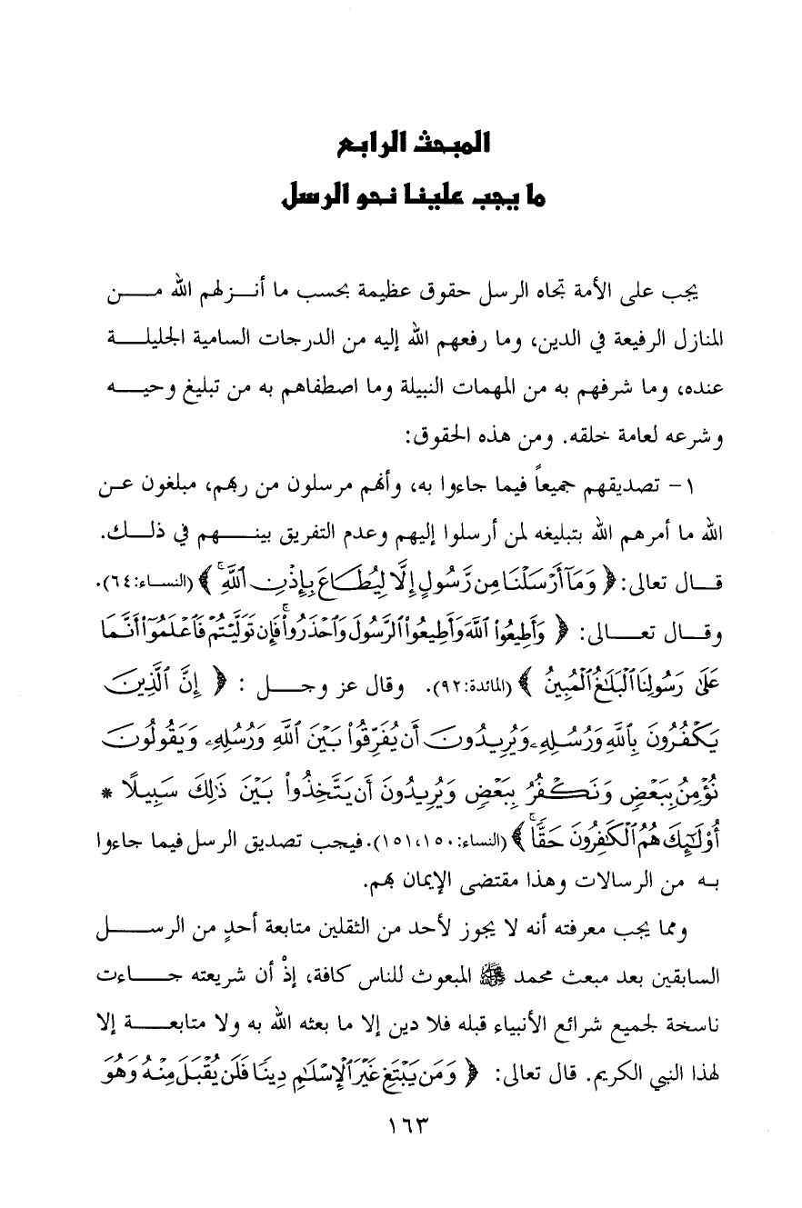 [المبحث الرابع ما يجب علينا نحو الرسل]