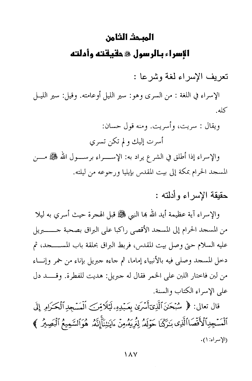 [المبحث الثامن الإسراء بالرسول صلى الله عليه وسلم حقيقته وأدلته]