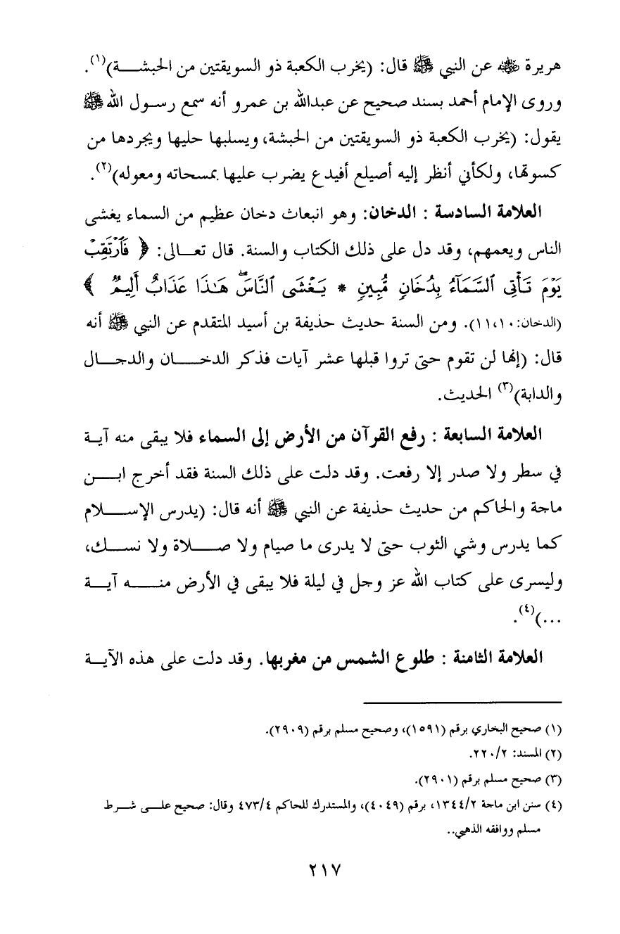 (¬4) سنن ابن ماجه 2 / 1344، برقم (4049) ، والمستدرك للحاكم 4 / 473 وقال: صحيح على شرط مسلم ووافقه الذهبي.