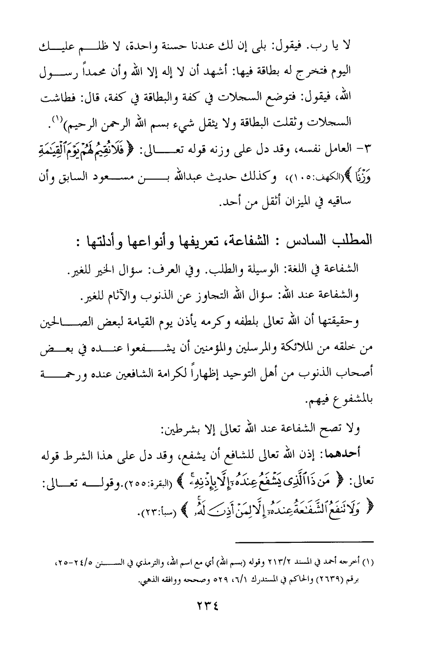[المطلب السادس الشفاعة تعريفها وأنواعها وأدلتها]