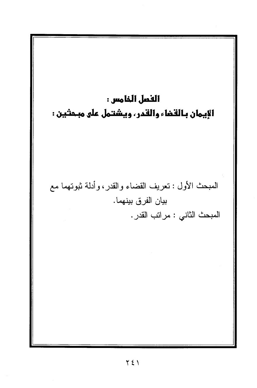 [الفصل الخامس الإيمان بالقضاء والقدر ويشتمل على مبحثين]