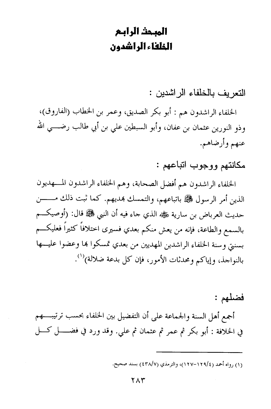 [المبحث الرابع الخلفاء الراشدون التعريف بالخلفاء الراشدين]