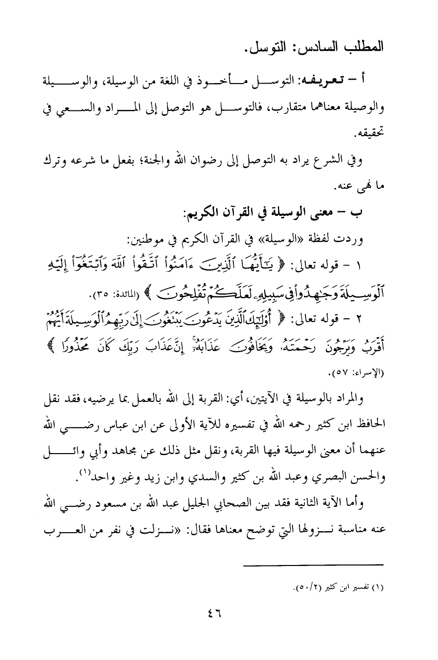 المطلب السادس: التوسل. أ- تعريفه: التوسل مأخوذ في اللغة من الوسيلة، والوسيلة والوصيلة معناهما متقارب، فالتوسل هو التوصل إلى المراد والسعي في تحقيقه.