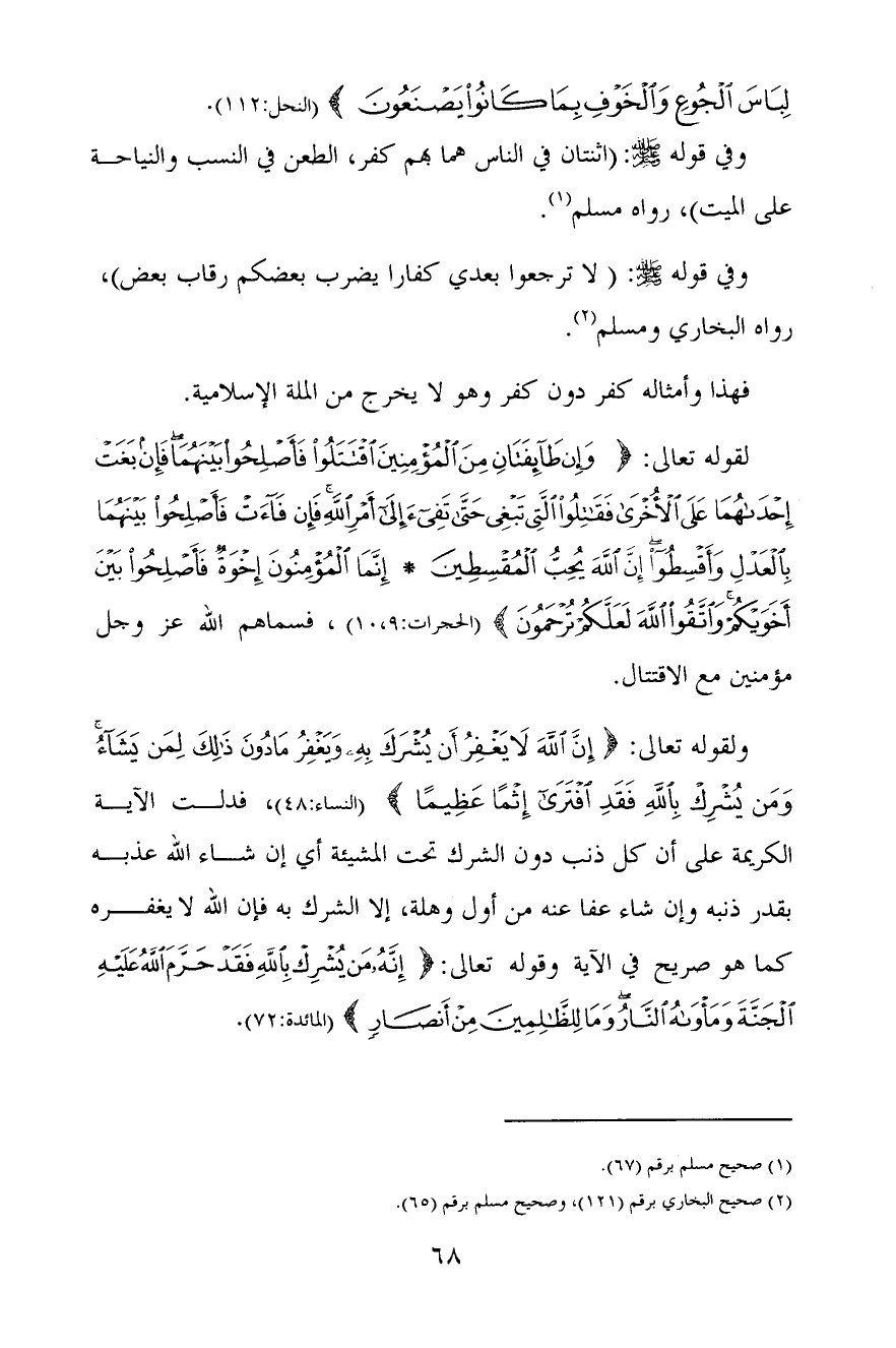 وفي قوله صلى الله عليه وسلم: «لا ترجعوا بعدي كفارا يضرب بعضكم رقاب بعض» ، رواه البخاري ومسلم (¬2) .