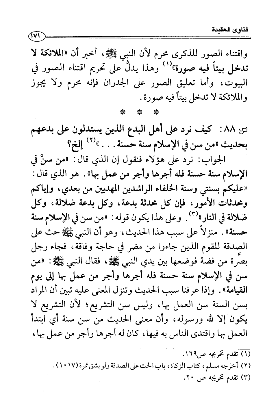 س88: كيف نرد على أهل البدع الذين يستدلون على بدعهم بحديث ((من سن في الإسلام سنة حسنة ... )) (¬2) إلخ؟