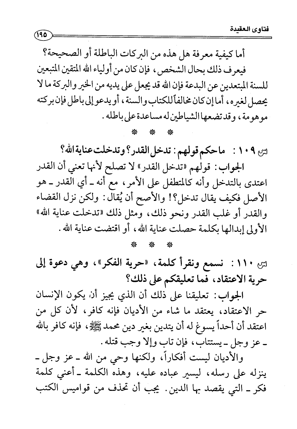 والأديان ليست أفكاراً، ولكنها وحي من الله -عز وجل- ينزله على رسله، ليسير عباده عليه، وهذه الكلمة -أعني كلمة فكر- التي يقصد بها الدين. يجب أن تحذف من قواميس الكتب