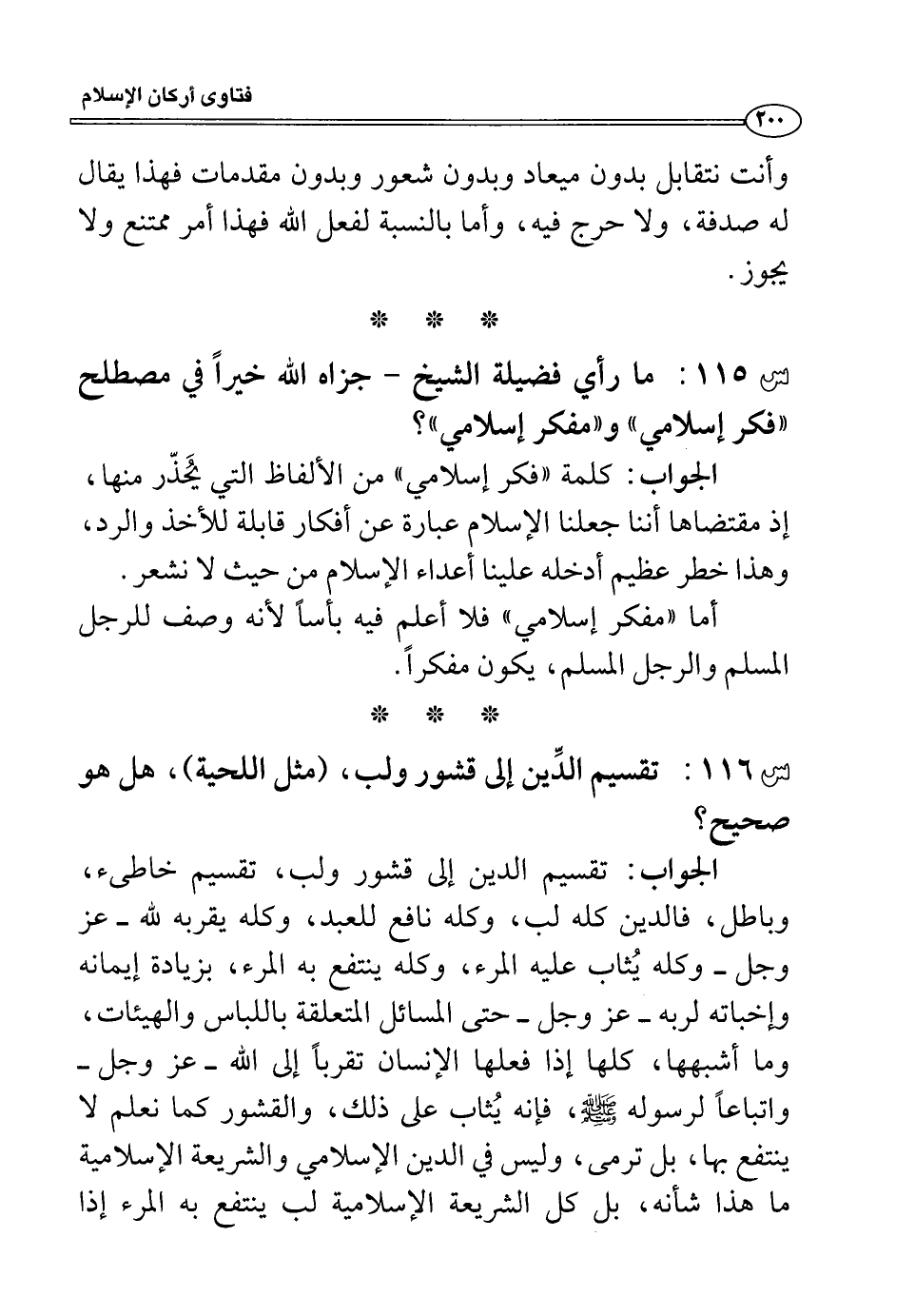 س115: ما رأي فضيلة الشيخ -جزاه الله خيراً في مصطلح_ ((فكر إسلامي)) و ((مفكر إسلامي)) ؟