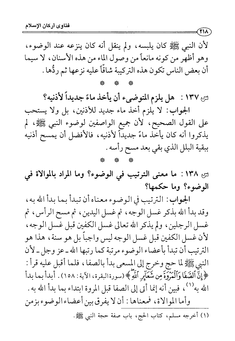 س138: ما معنى الترتيب في الوضوء؟ وما المراد بالموالاة في الوضوء؟ وما حكمها؟