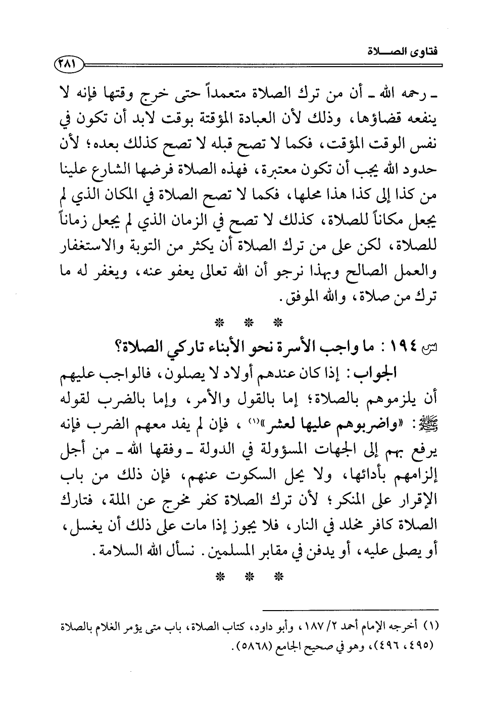 س194: ما واجب الأسرة نحو الأبناء تاركي الصلاة؟