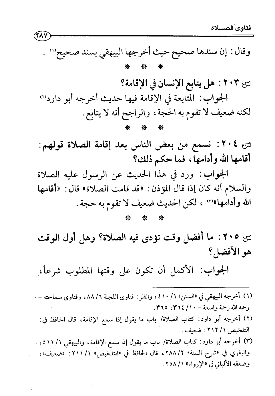 (¬1) أخرجه البيهقي في "السنن" 1/410، وانظر: فتاوى اللجنة 6/88، وفتاوى سماحته -رحمه الله رحمة واسعة- 10/364، 365.