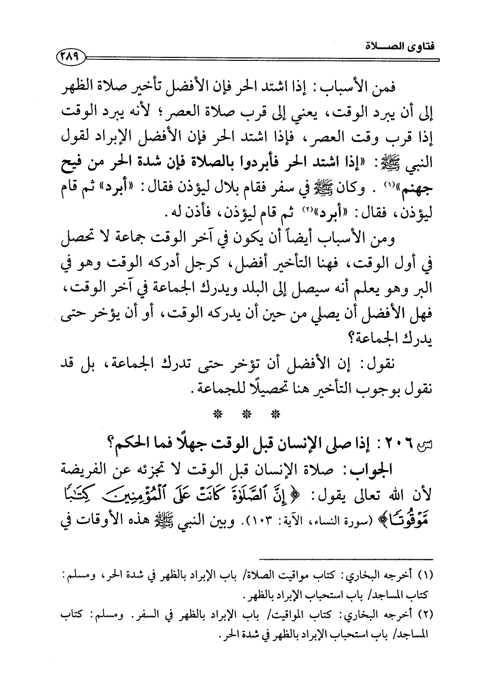 (¬2) أخرجه البخاري: كتاب المواقيت/ باب الإبراد بالظهر في السفر. ومسلم: كتاب المساجد/ باب استحباب الإبراد بالظهر في شدة الحر.