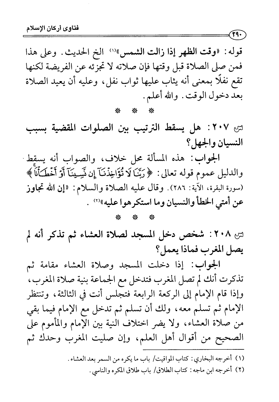 س207: هل يسقط الترتيب بين الصلوات المقضية بسبب النسيان والجهل؟