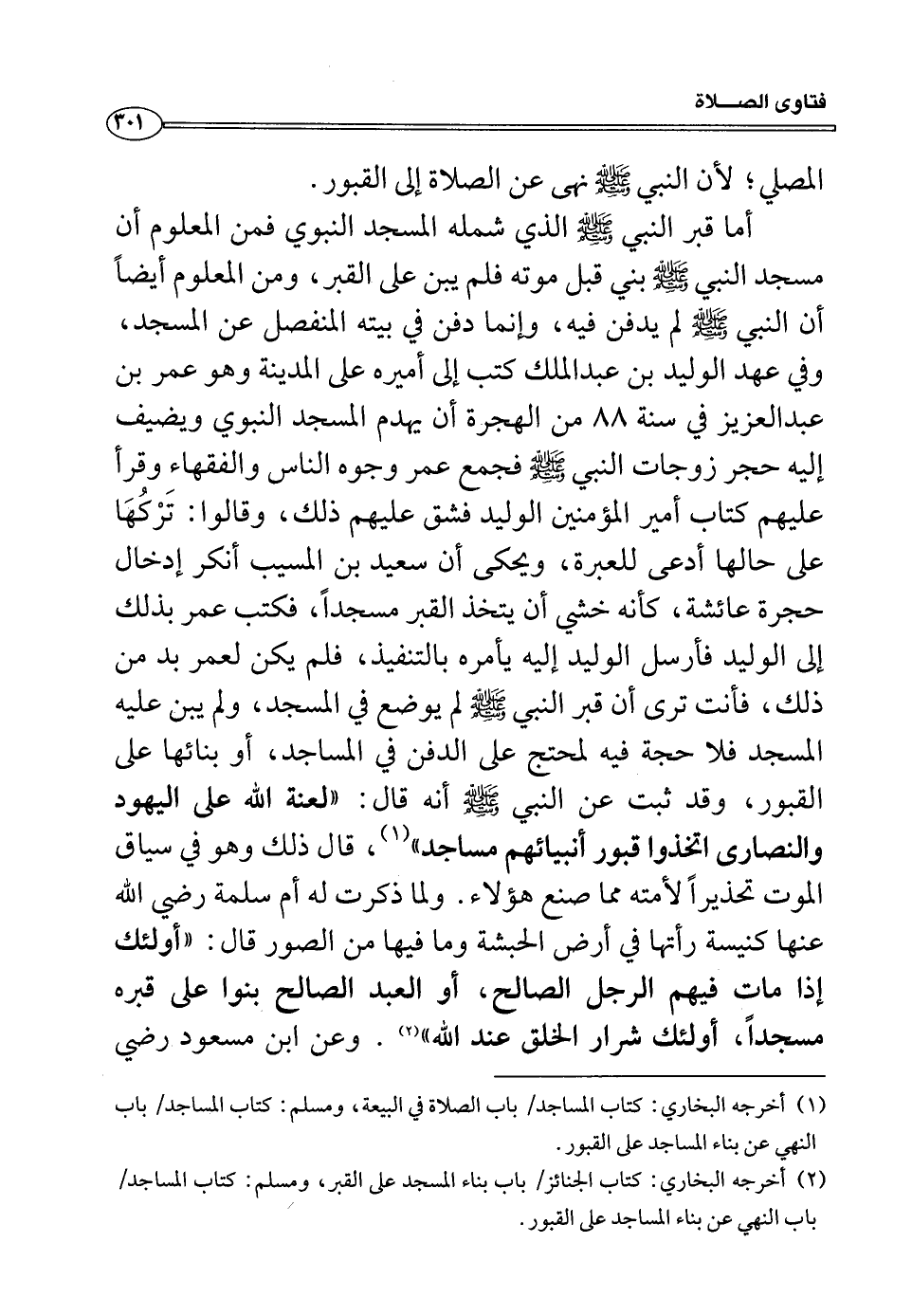(¬2) أخرجه البخاري: كتاب الجنائز/ باب بناء المسجد على القبر، ومسلم: كتاب المساجد/ باب النهي عن بناء المساجد على القبور.