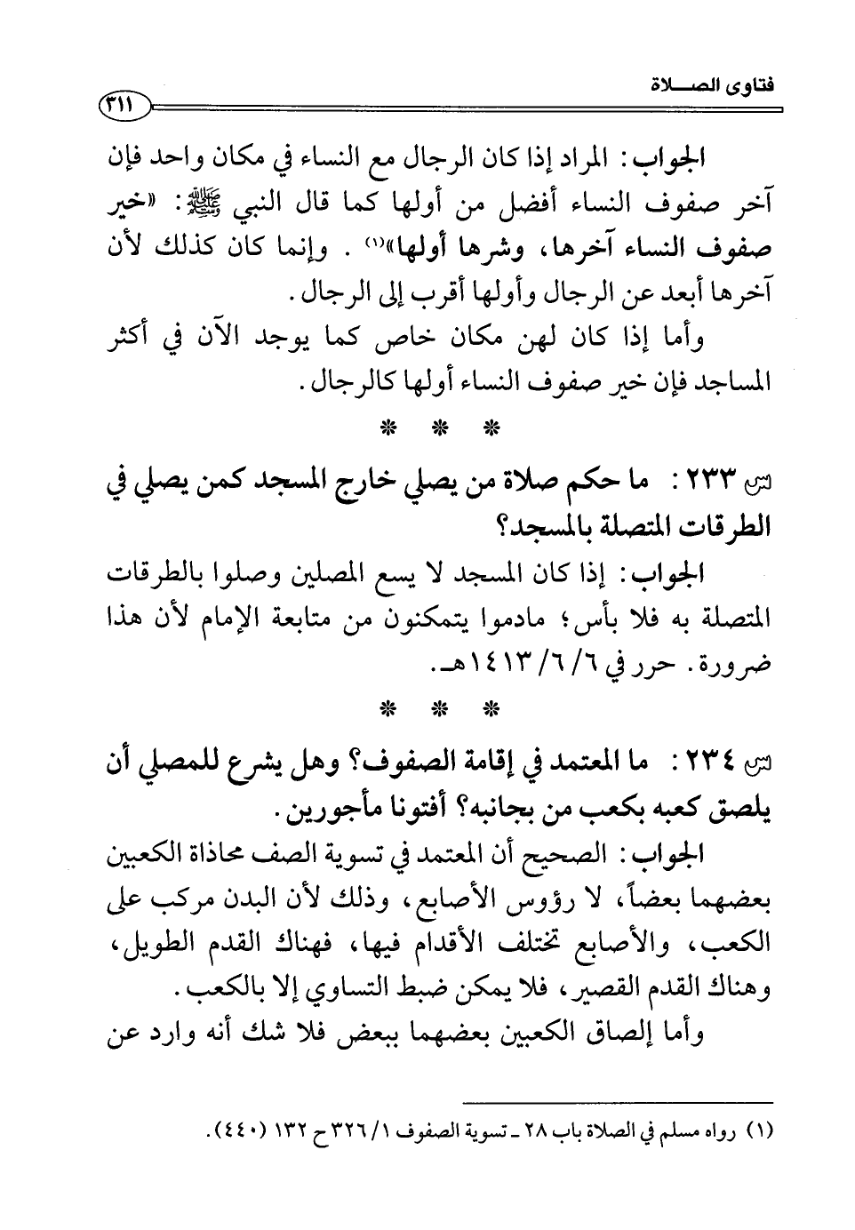س234: ما المعتمد في إقامة الصفوف؟ وهل يشرع للمصلي أن يلصق كعبه بكعب من بجانبه؟ أفتونا مأجورين؟