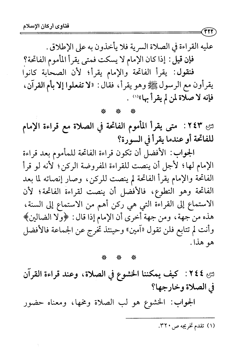 س 243: متى يقرأ المأموم الفاتحة في الصلاة مع قراءة الإمام للفاتحة أو عندما يقرأ في السورة.