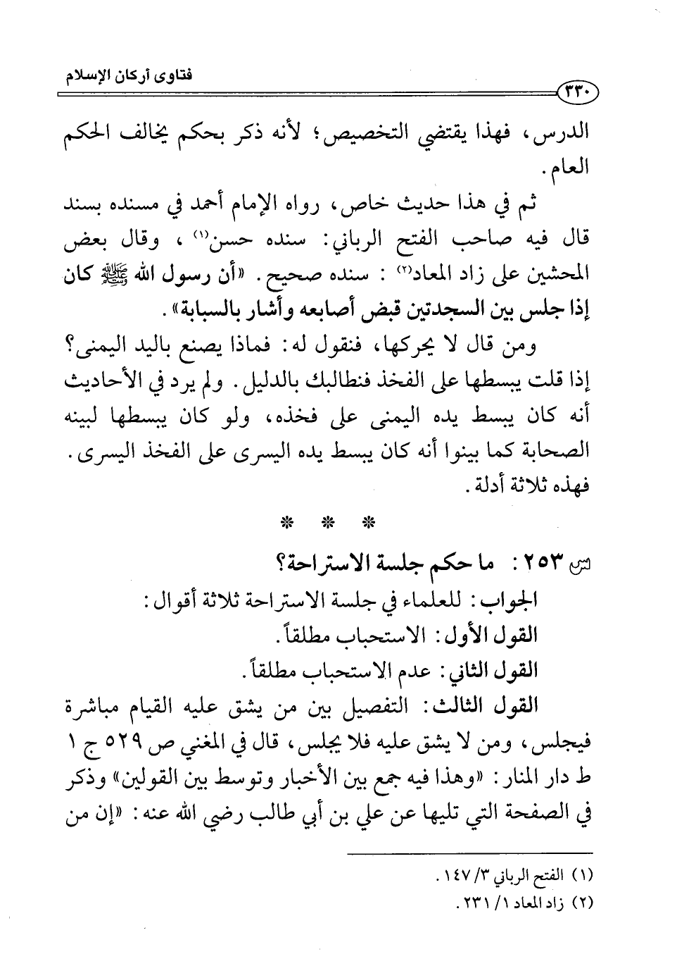 الجواب: للعلماء في جلسة الاستراحة ثلاثة أقوال:
