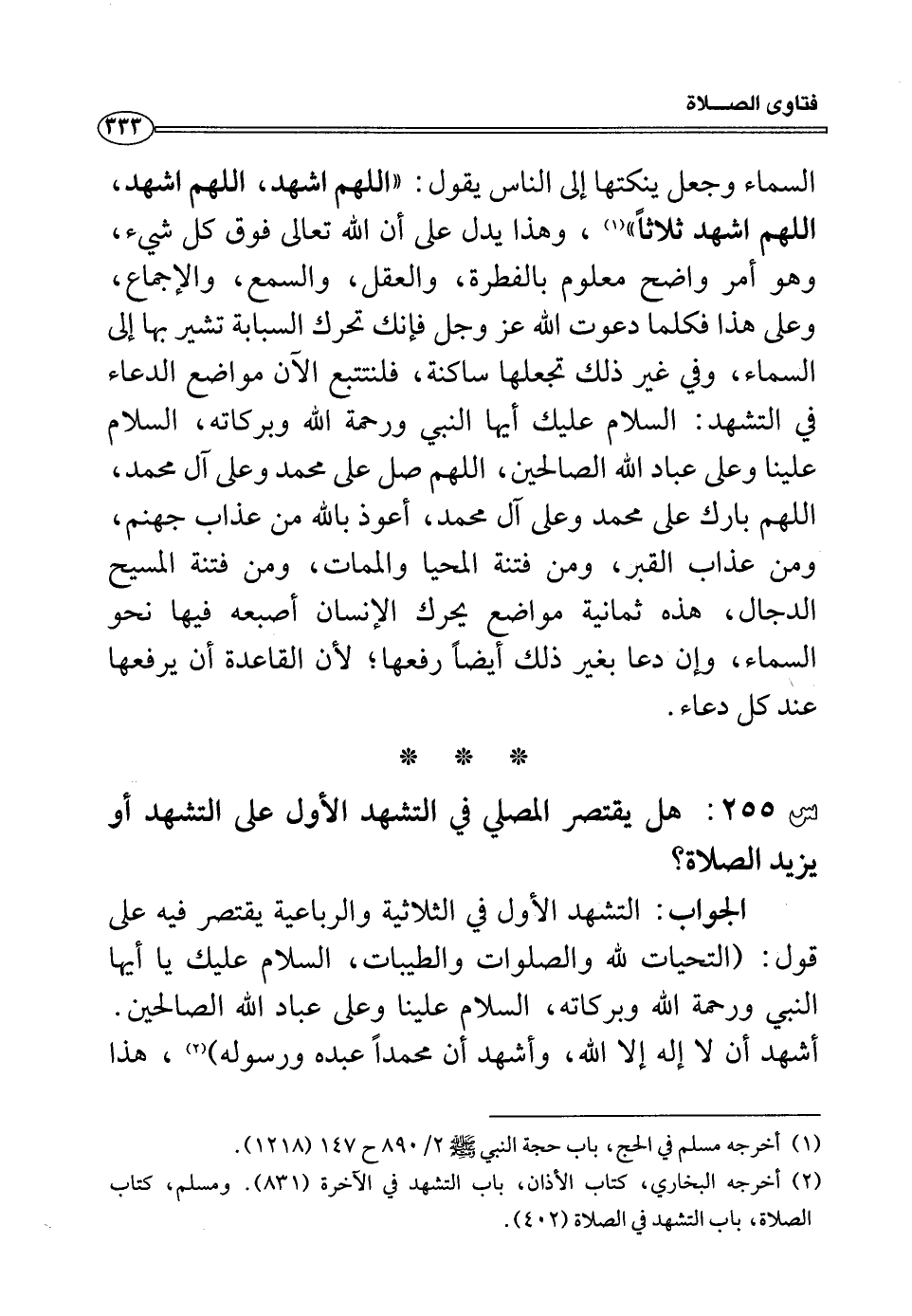 س 255: هل يقتصر المصلى في التشهد الأول على التشهد أو يزيد الصلاة؟