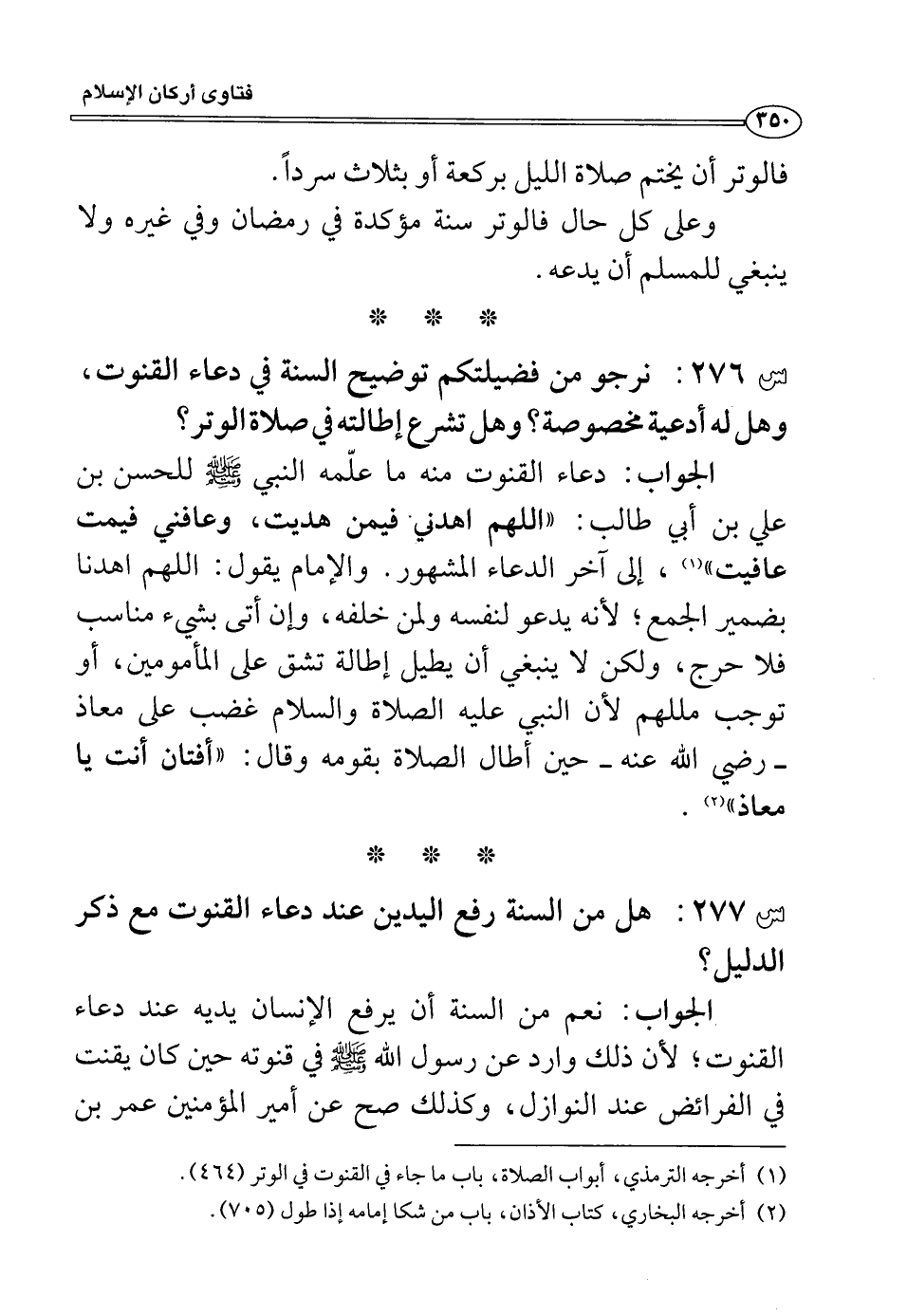 س 277: هل من السنة رفع اليدين عند دعاء القنوت مع ذكر الدليل؟
