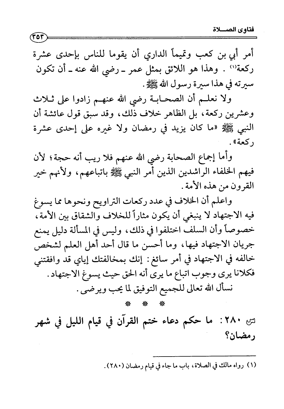 (¬1) رواه مالك في الصلاة، باب ما جاء في قيام رمضان (280) .