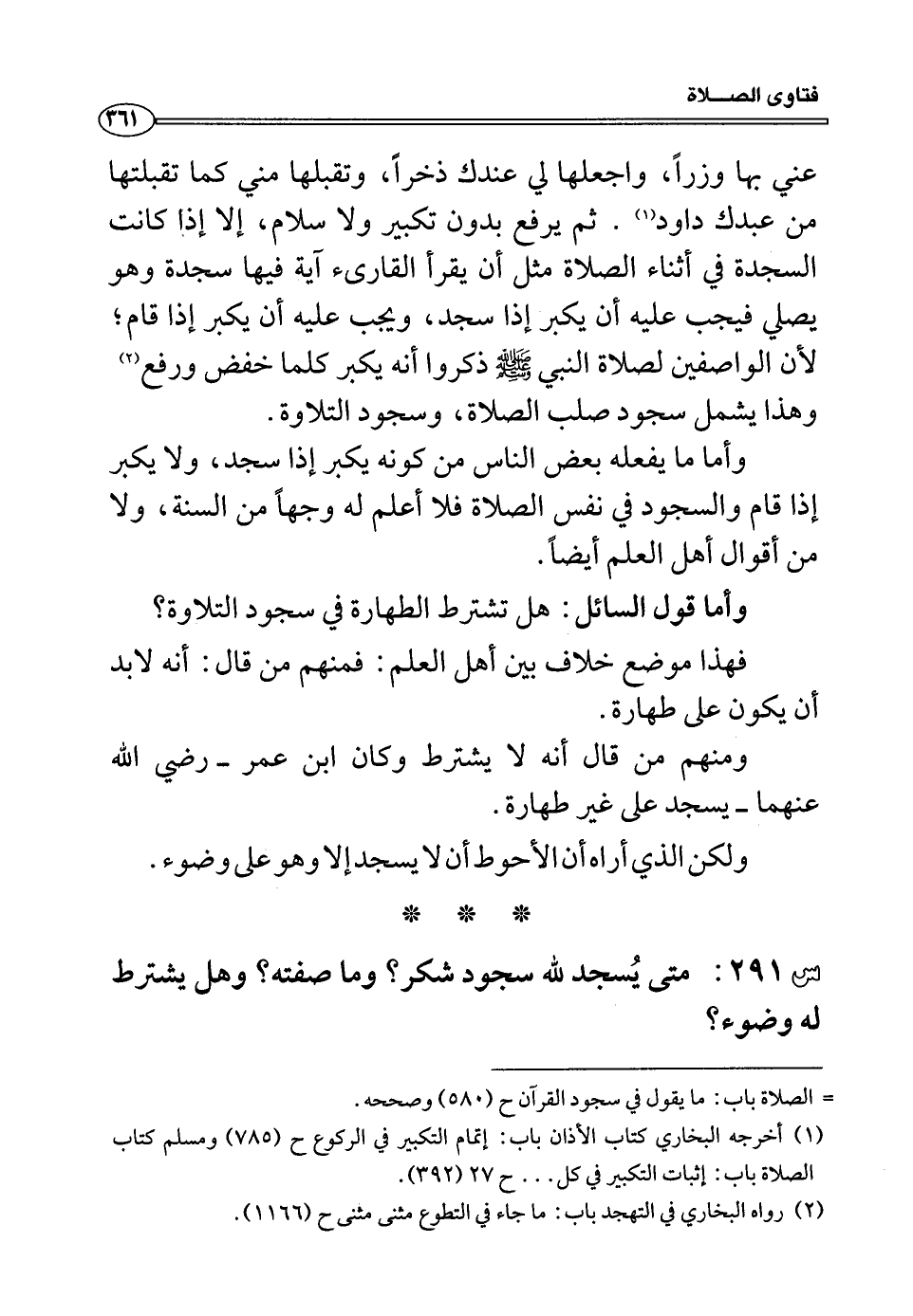 س291: متى يُسجد لله سجود شكر؟ وما صفته؟ وهل يشترط له وضوء؟