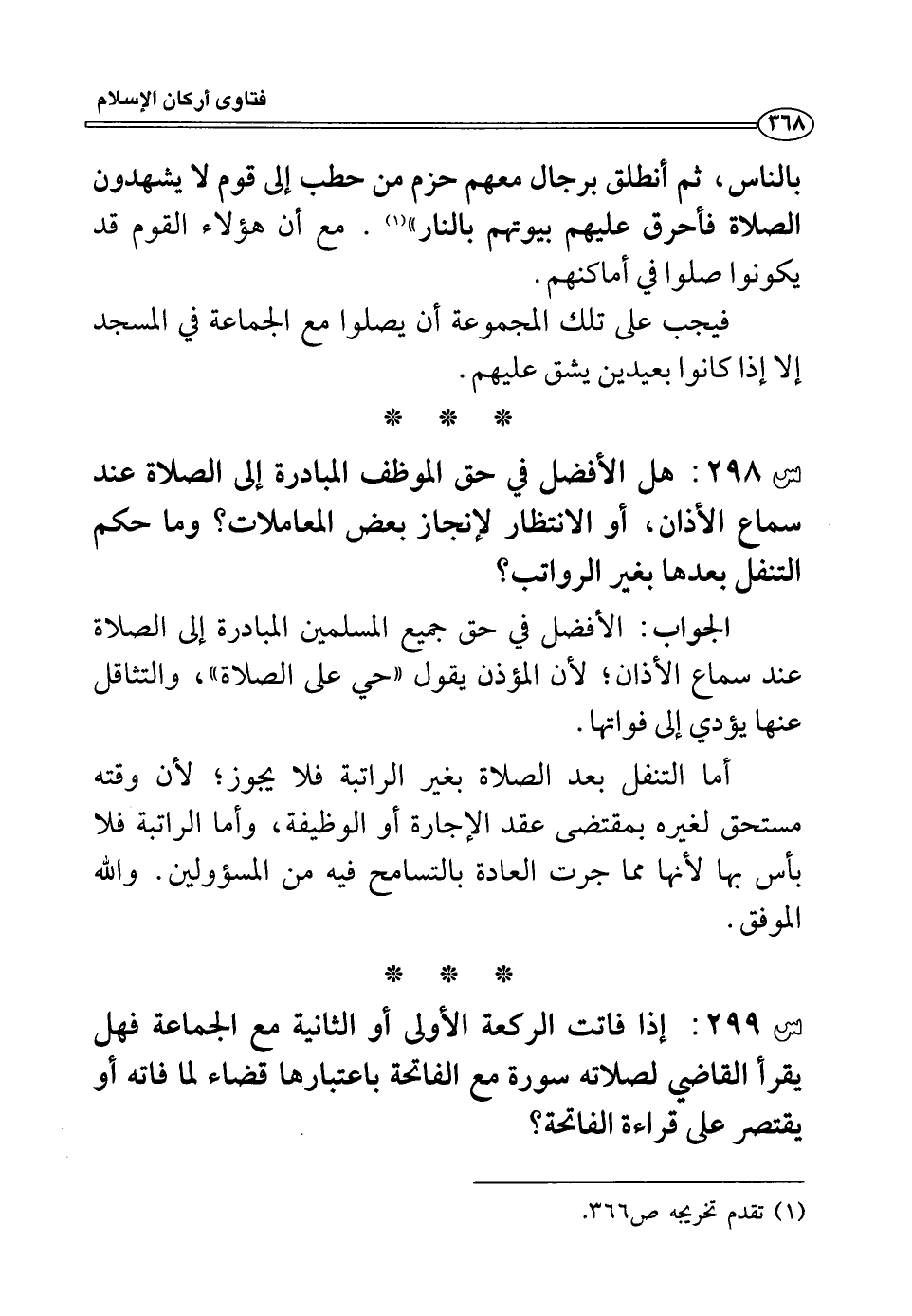 س298: هل الأفضل في حق الموظف المبادرة إلى الصلاة عند سماع الأذان، أو الانتظار لإنجاز بعض المعاملات؟ وما حكم التنفل بعدها بغير الرواتب؟