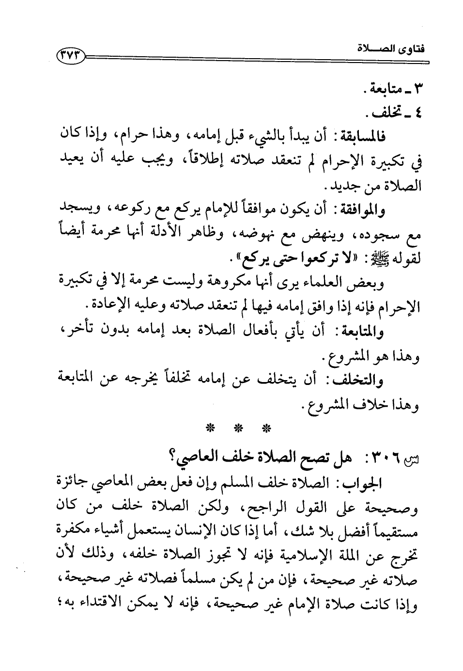 س 306: هل تصح الصلاة تخلف العاصي؟