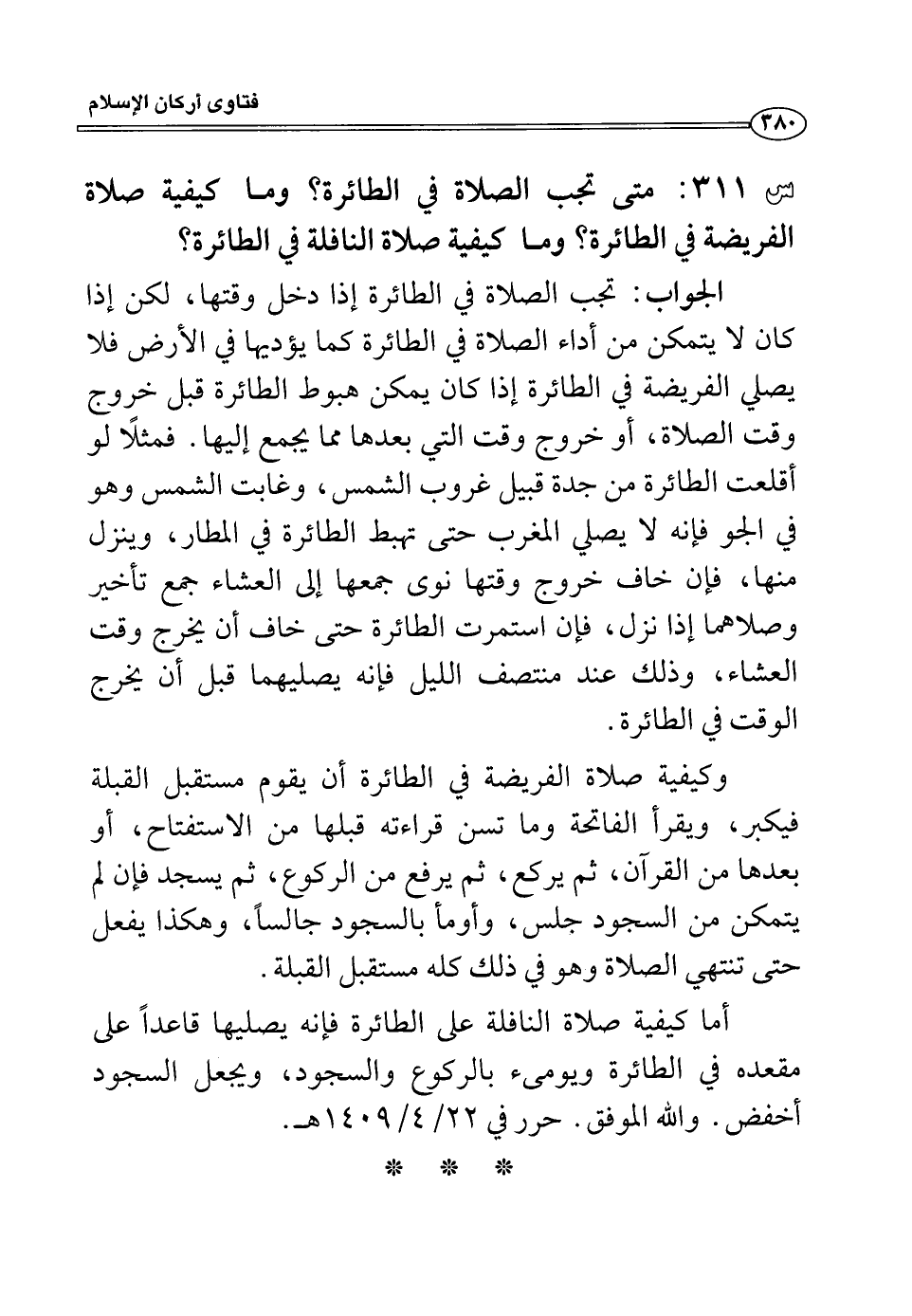 س311: متى تجب الصلاة في الطائرة؟ وما كيفية صلاة الفريضة في الطائرة؟ وما كيفية صلاة النافلة في الطائرة؟