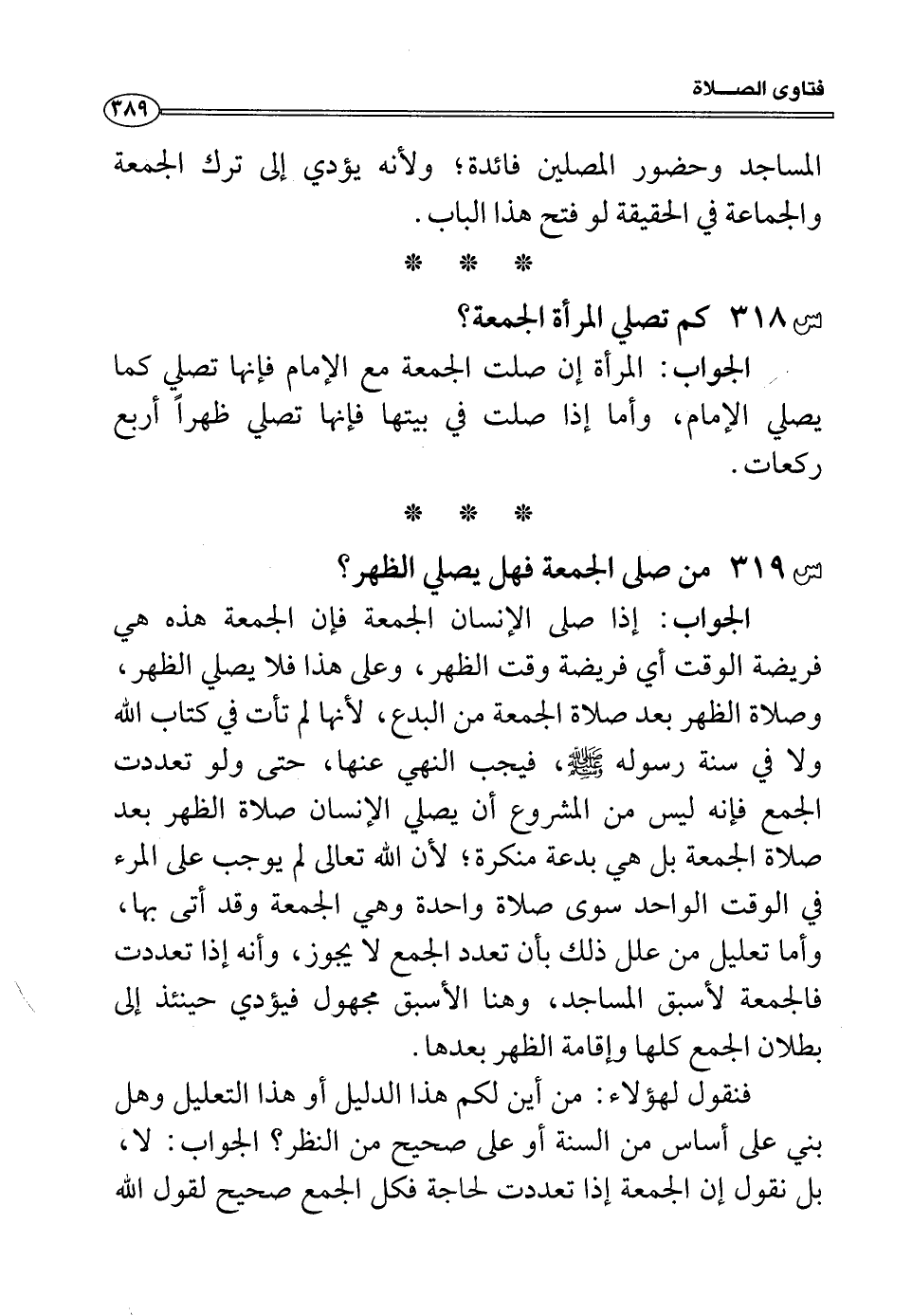 س319: من صلى الجمعة فهل يصلى الظهر؟