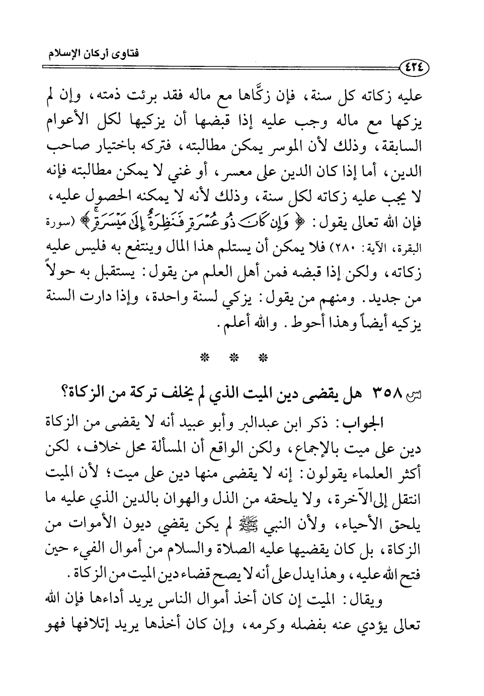 س358: هل يقضى دين الميت الذي لم يخلف تركة من الزكاة؟