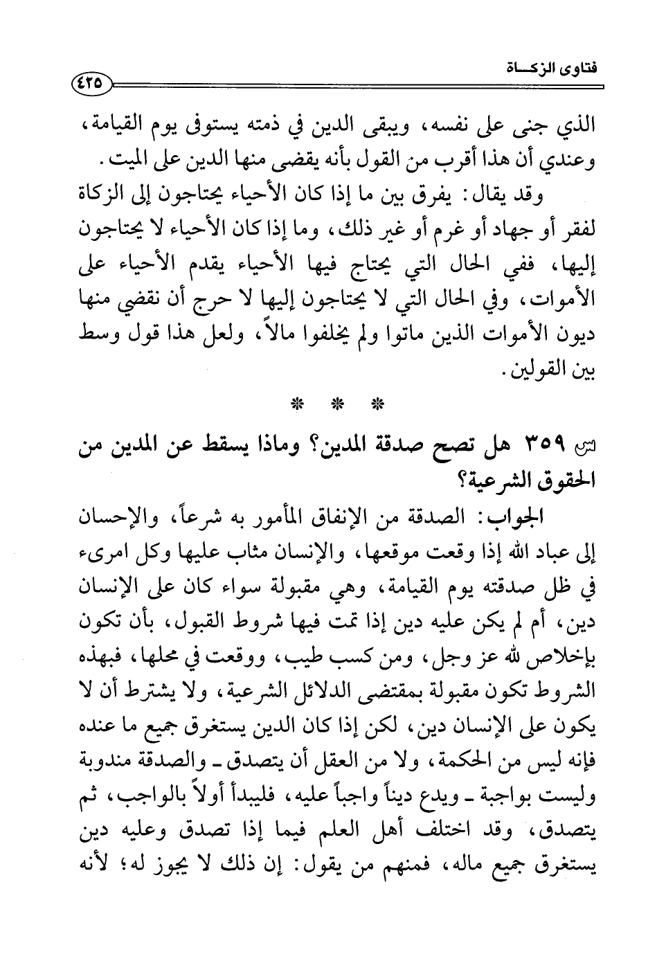 س359: هل تصح صدقة المدين؟ وماذا يسقط عن المدين من الحقوق الشرعية؟