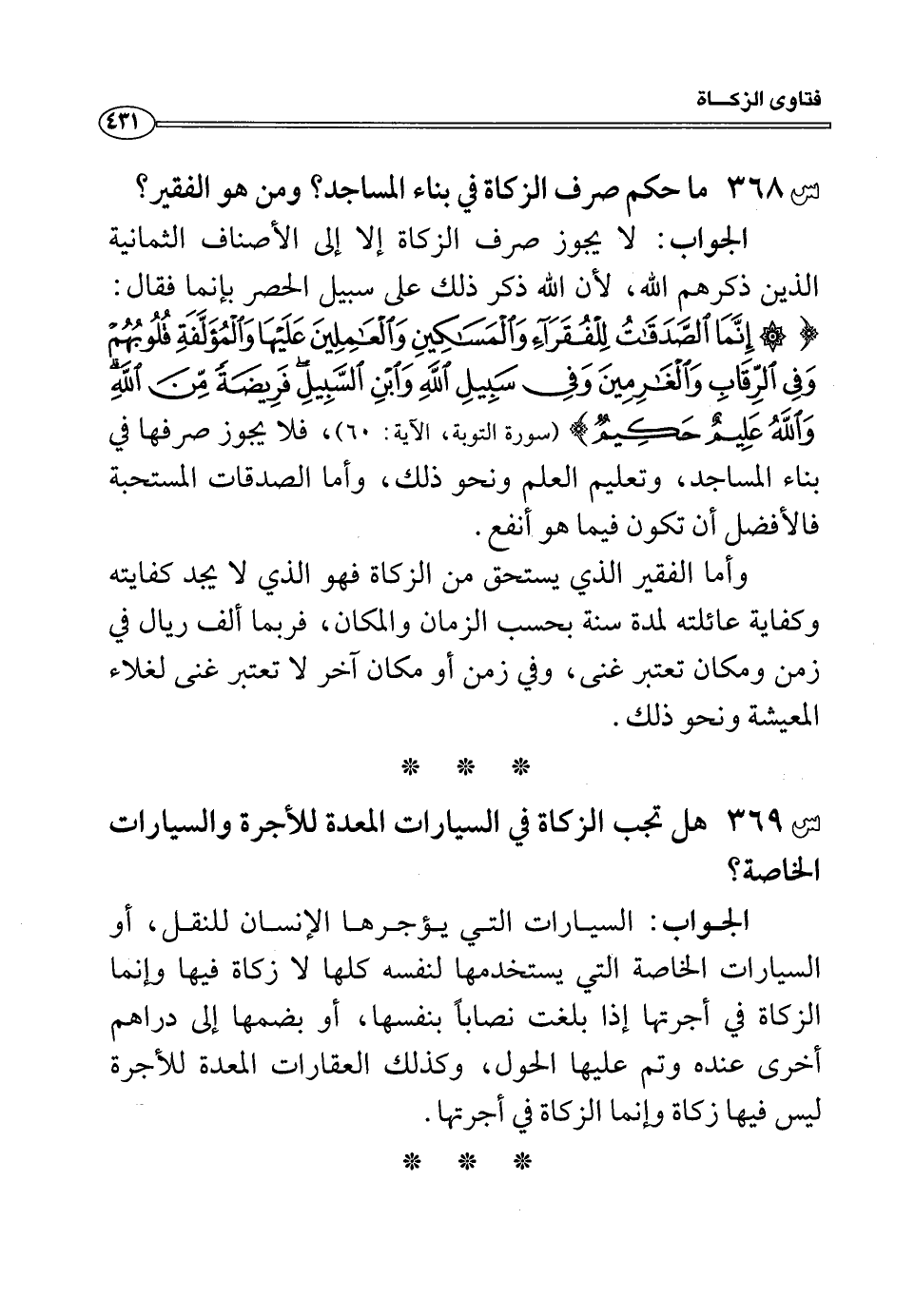 س 368: ما حكم صرف الزكاة في بناء المساجد؟ ومن هو الفقير؟
