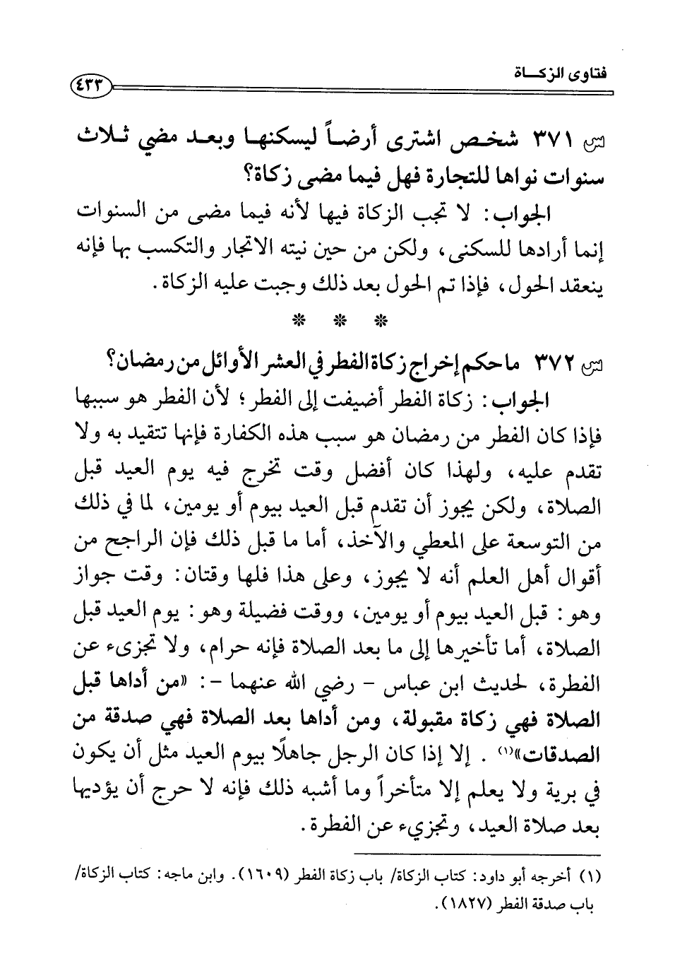 (¬1) أخرجه أبو داود: كتاب الزكاة/ باب زكاة الفطر (1609) . وابن ماجة: كتاب الزكاة/ باب صدقة الفطر (1827) .