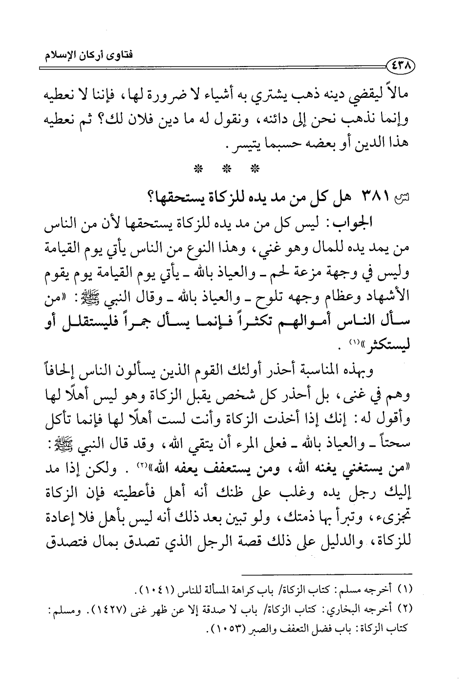 س381: هل كل من مد يده للزكاة يستحقها؟