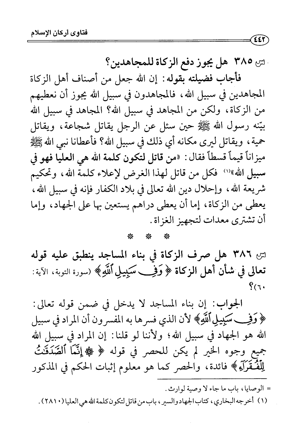 س386: هل صرف الزكاة في بناء المساجد ينطبق عليه قوله تعالى في شأن أهل الزكاة؟ (وَفِي سَبِيلِ اللَّه) ؟