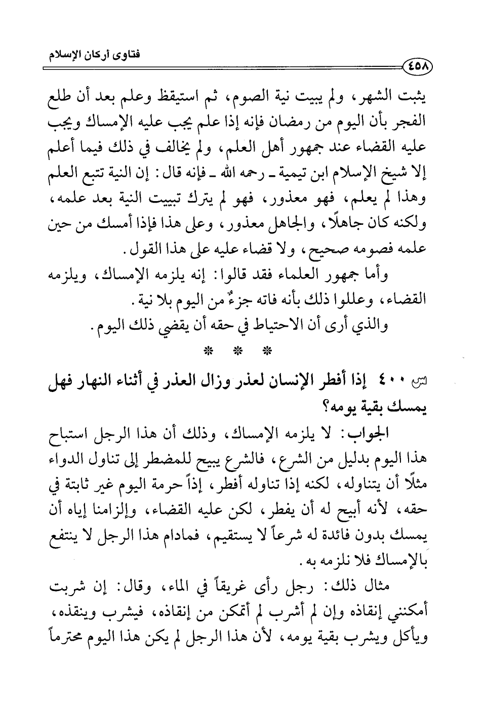 س400: إذا أفطر الإنسان لعذر وزال العذر في أثناء النهار فهل يمسك بقية يومه؟