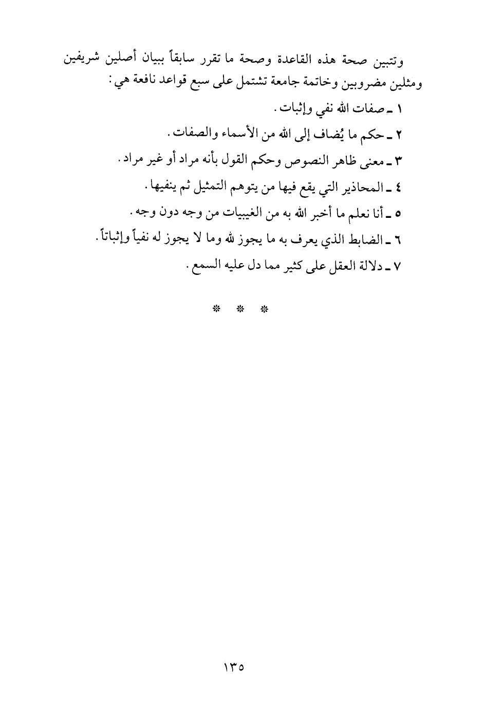 وتتبين صحة هذه القاعدة وصحة ما تقرر سابقاً ببيان أصلين شريفين ومثلين مضروبين وخاتمة جامعة تشتمل على سبع قواعد نافعة هي: